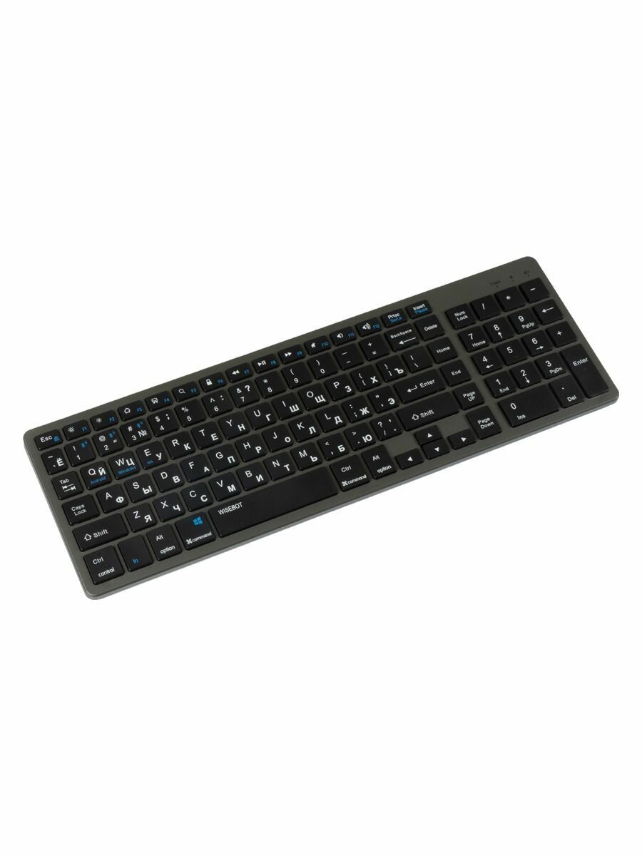 Купить Клавиатура беспроводная, заряжаемая, полноразмерная, с подключением через блютус или USB-приемник, серая
