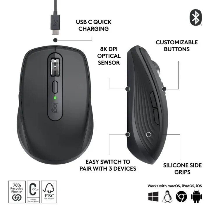 Ниже Вы можете прочитать отзывы на Logitech MX Anywhere 3s, черный, ознакомится с подробными характеристиками, посмотреть интересные обзоры и фотографии на Logitech MX Anywhere 3s, черный.