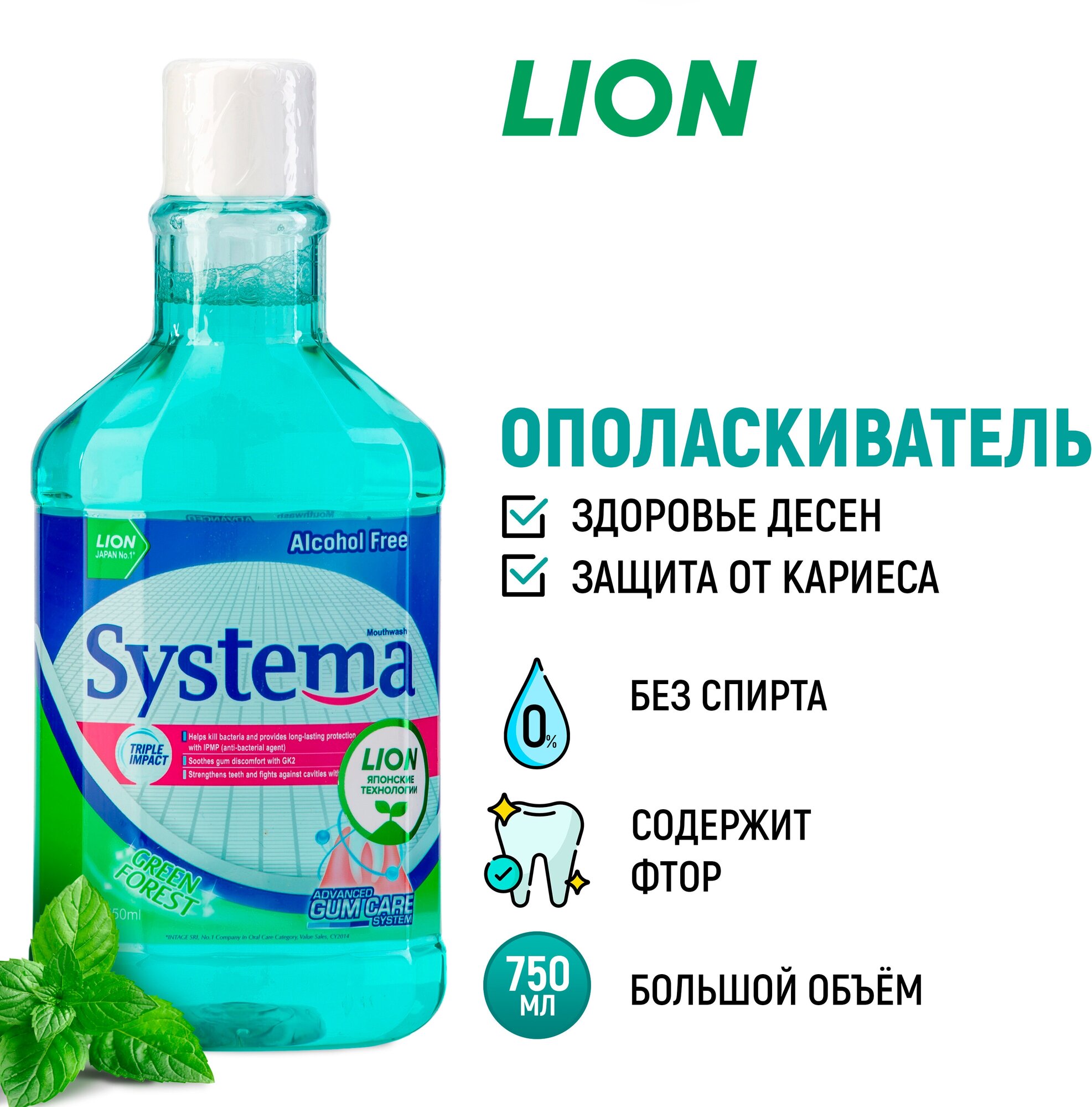 LION Ополаскиватель для полости рта Systema "Зеленый лес" с фтором и ксилитом / Жидкость для полоскания, средство для зубов и десен / Защита от зубного налета и кариеса, 750 мл