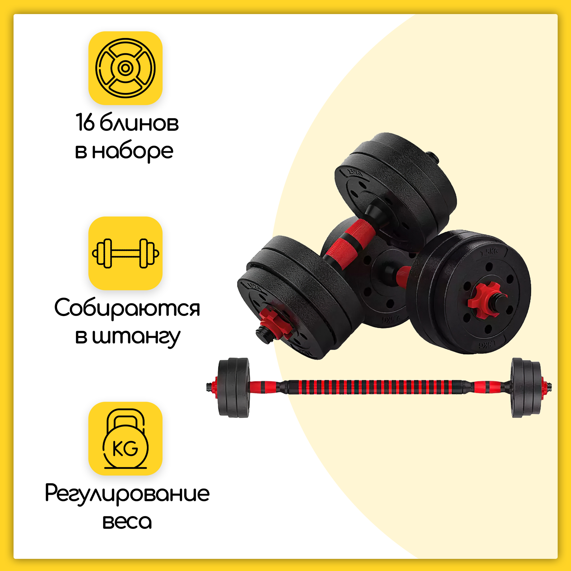 Гантели разборные 40 кг (2х20 кг) для фитнеса, со штангой (трансформер), URM интересное: