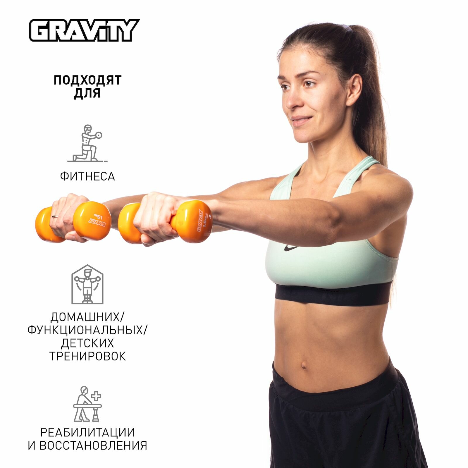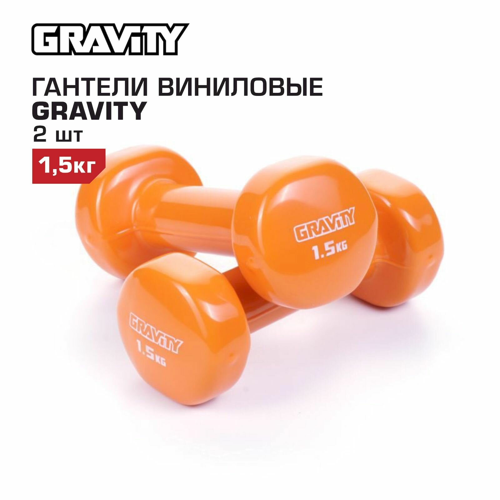 | Комплектация | Гантели с виниловым покрытием Gravity, оранжевые, 1.5 кг, пара |