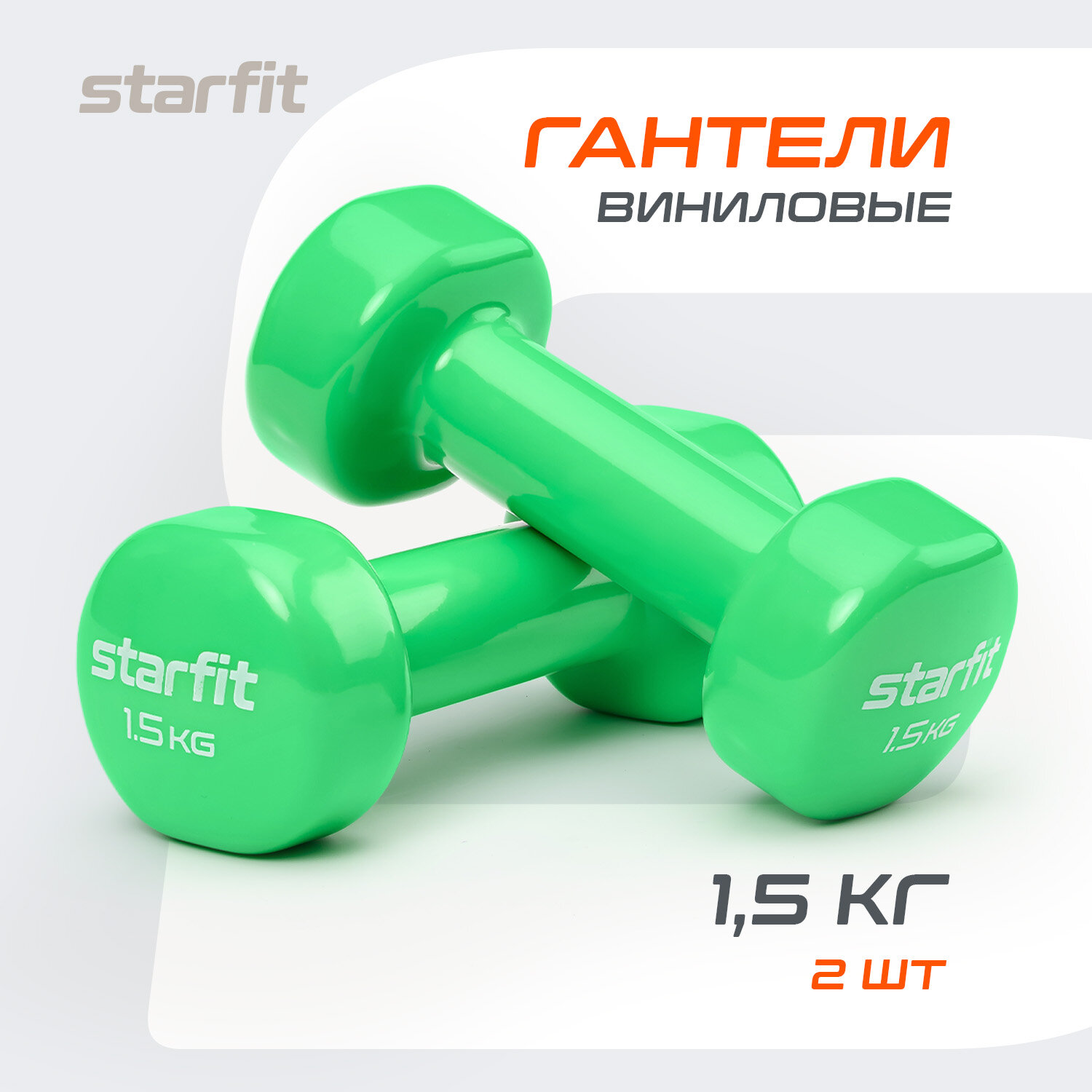 Купить Гантели для фитнеса виниловые набор гантелей STARFIT DB-101 1,5 кг, зеленый, 2 шт