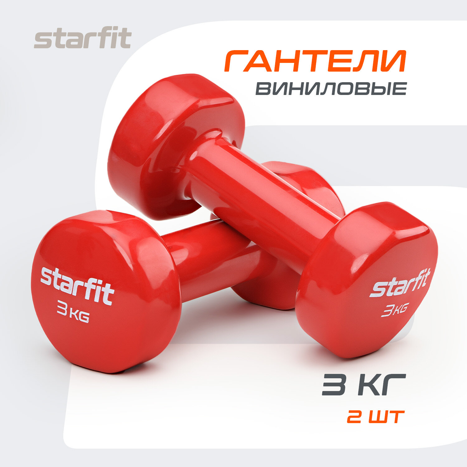 Купить Гантели для фитнеса виниловые набор гантелей STARFIT Core DB-101 3 кг, красный, 2 шт