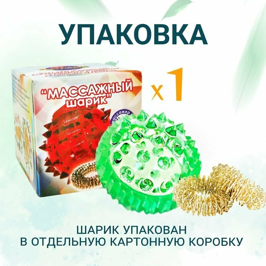 Су-джок массажный шарик с пружинными кольцами, развитие мелкой моторики, комплект 2 шт. цвет зеленый