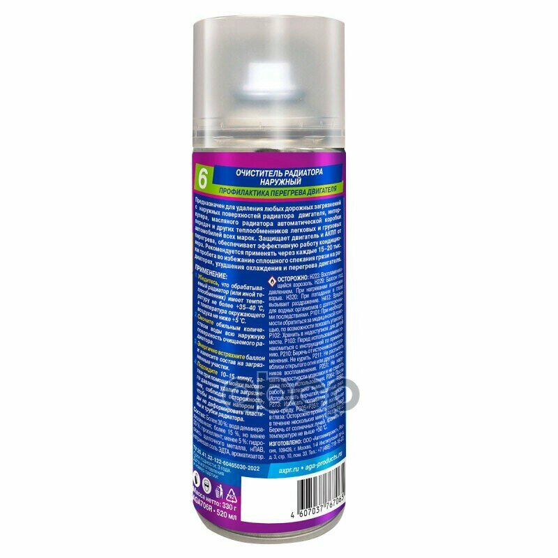 AGA Очиститель радиатора наружный R6 (335ml), шт интересное: