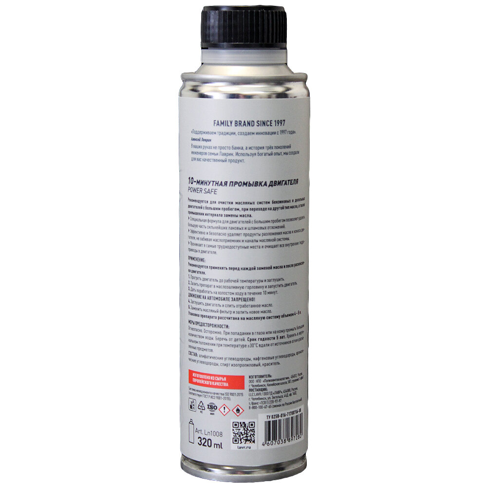 Lavr 10 минутная промывка двигателя Power Safe 320 мл Ln1008 .