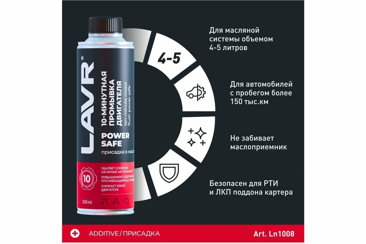 Промывка двигателя 10 минутная Power Safe LAVR 320 мл (при большом пробеге) (Ln1008) интересное: