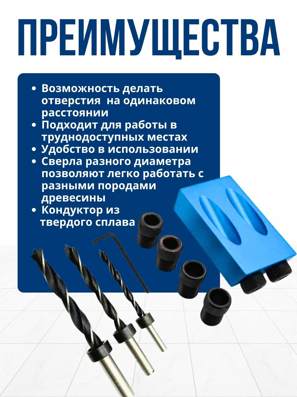 Кондуктор для сверления отверстий (косой шуруп)двухканальный + три сверла по дереву 6-8-10мм и 2 направляющих болта интересное: