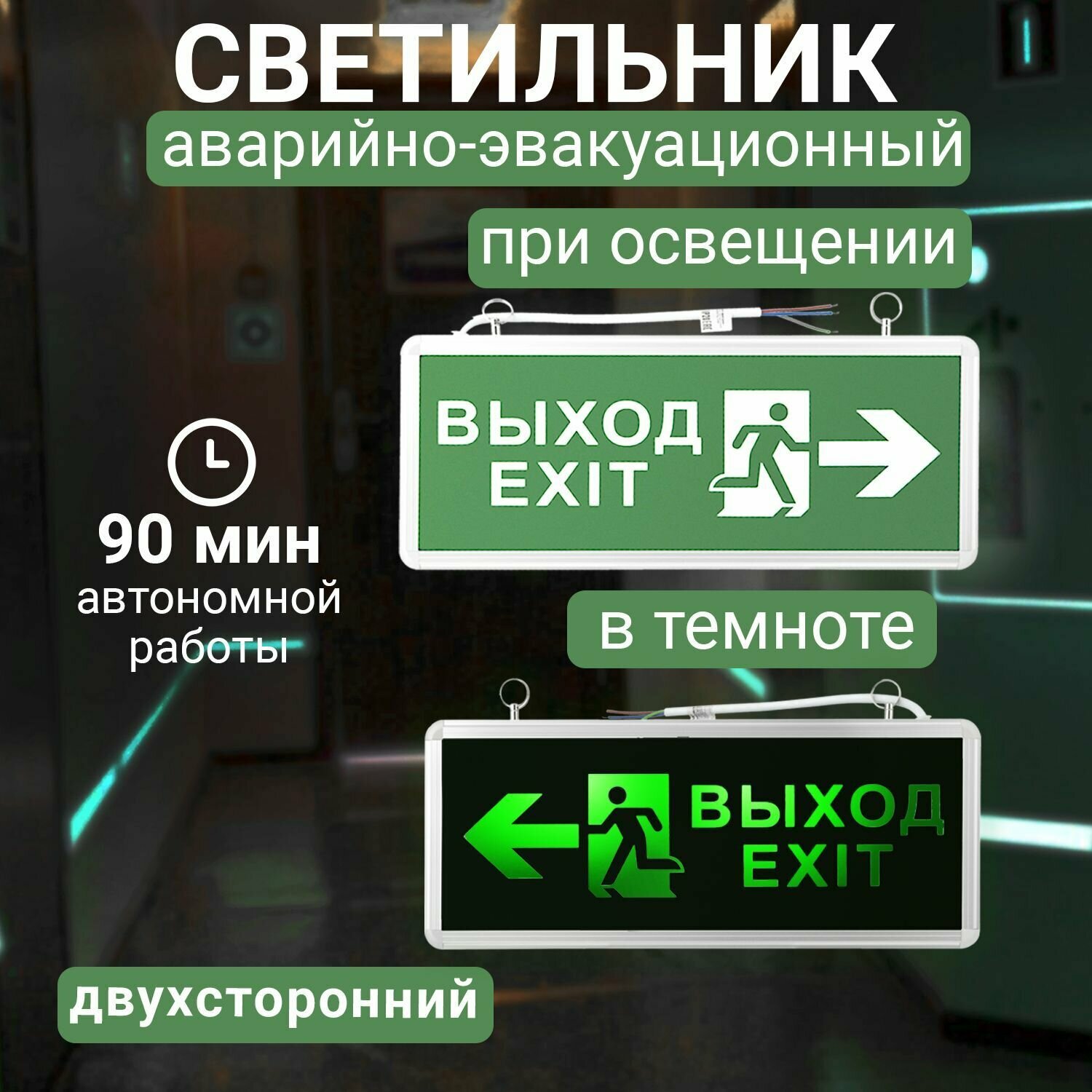 Аварийный светильник Rexant "выход-exit" светодиодный двусторонний . интересное: