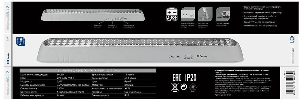 Светильник аккумуляторный, 90 LED AC/DC, белый, EL17 артикул 12898 интересное: