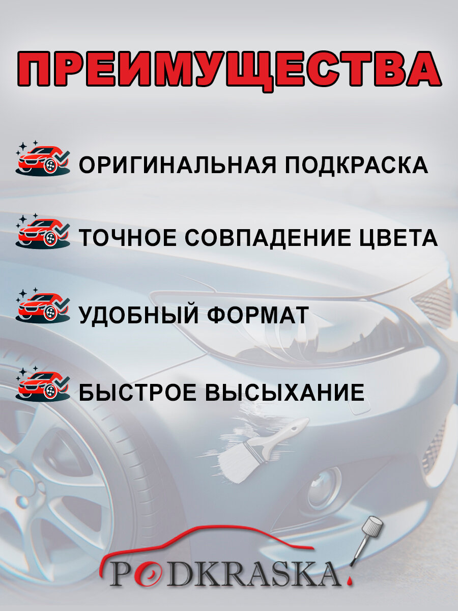 | Дополнительная информация | Оригинальная подкраска для автомобиля по VIN номеру, инструкция и всё необходимое в комплекте (наждачная бумага, перчатки, палочка для подкраски мелких царапин) , кузовный ремонт - легко и своими руками |