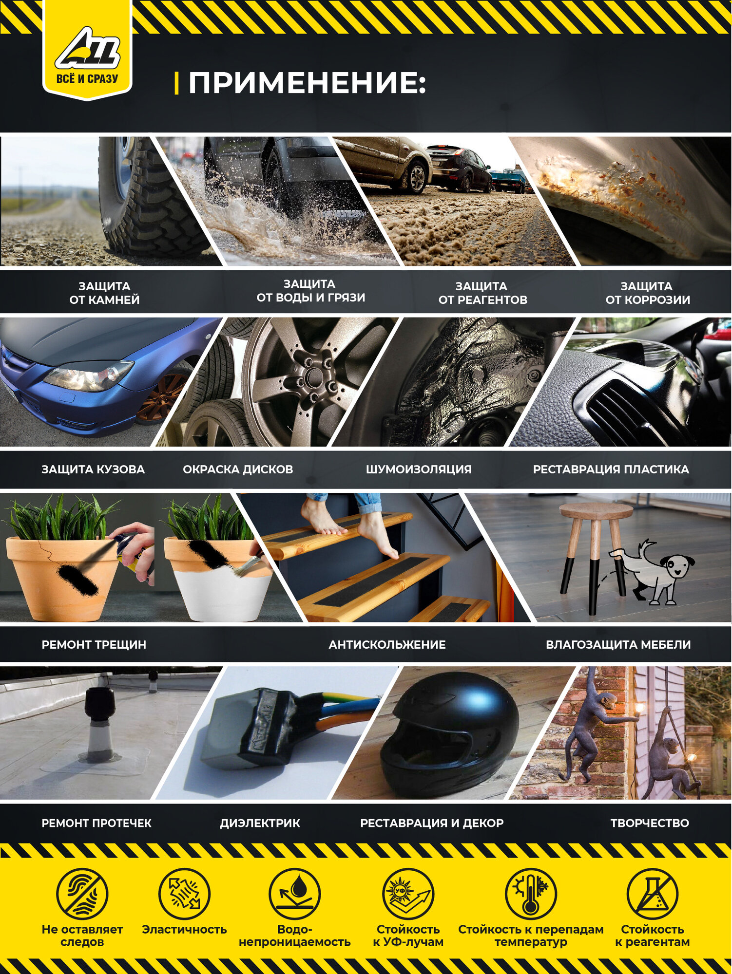 ALL Жидкая резина 520 мл Черная матовая гидроизоляция/декор/защитное покрытие/антигравий интересное: