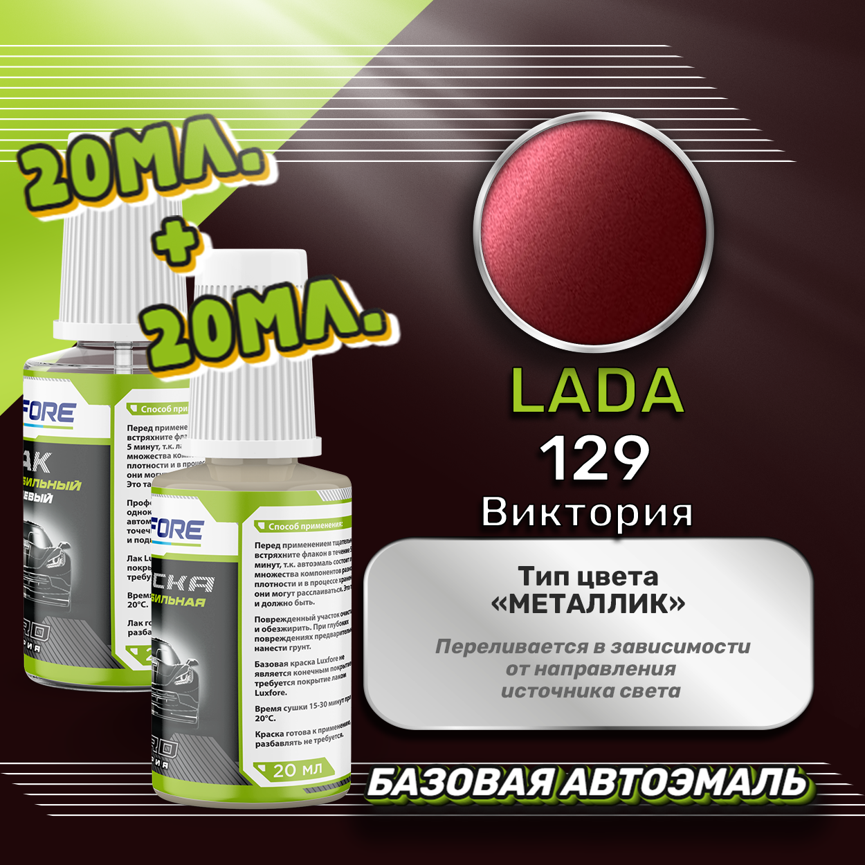 СохранитьLuxfore подкраска для царапин и сколов LADA 129 Виктория 20 мл + лак 20 мл комплект интересное: