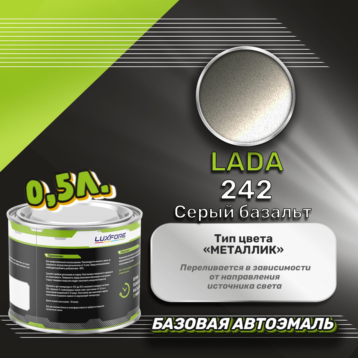 Купить Luxfore краска базовая эмаль LADA 242 Серый базальт 500 мл
