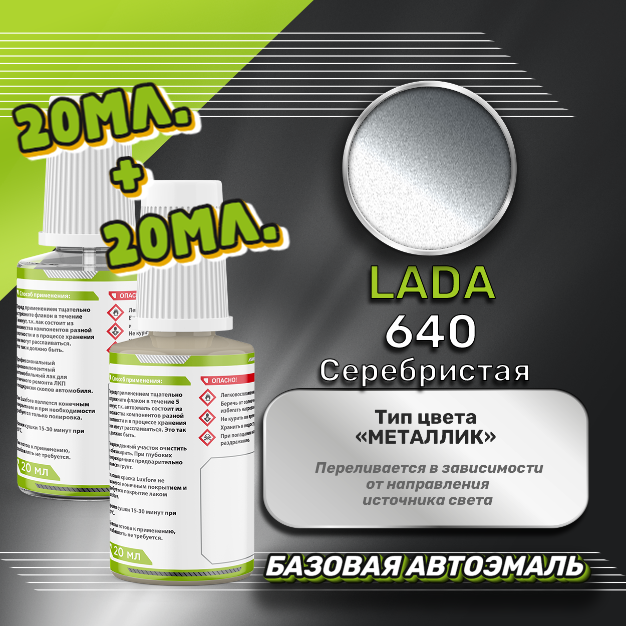 Luxfore автоэмаль базовая LADA 640 Серебристая подкраска 20 мл.