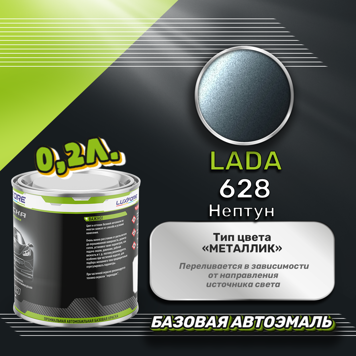 Luxfore краска базовая эмаль LADA 628 Нептун 2000 мл