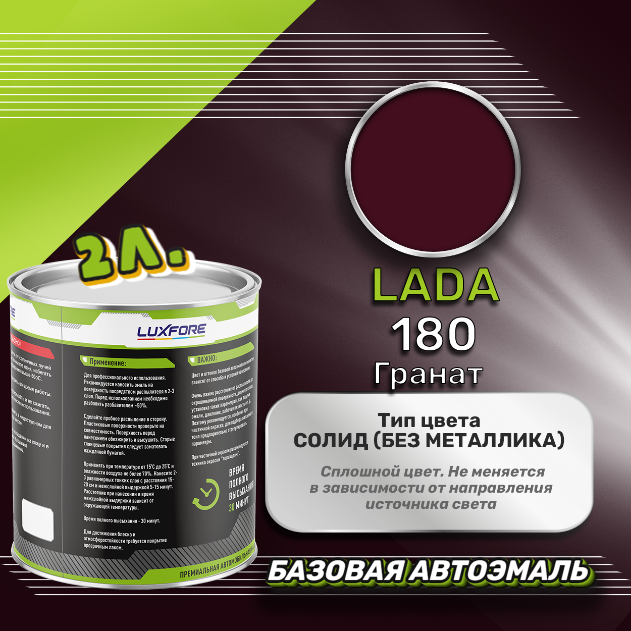 Купить Luxfore краска базовая эмаль LADA 180 Гранат 2000 мл