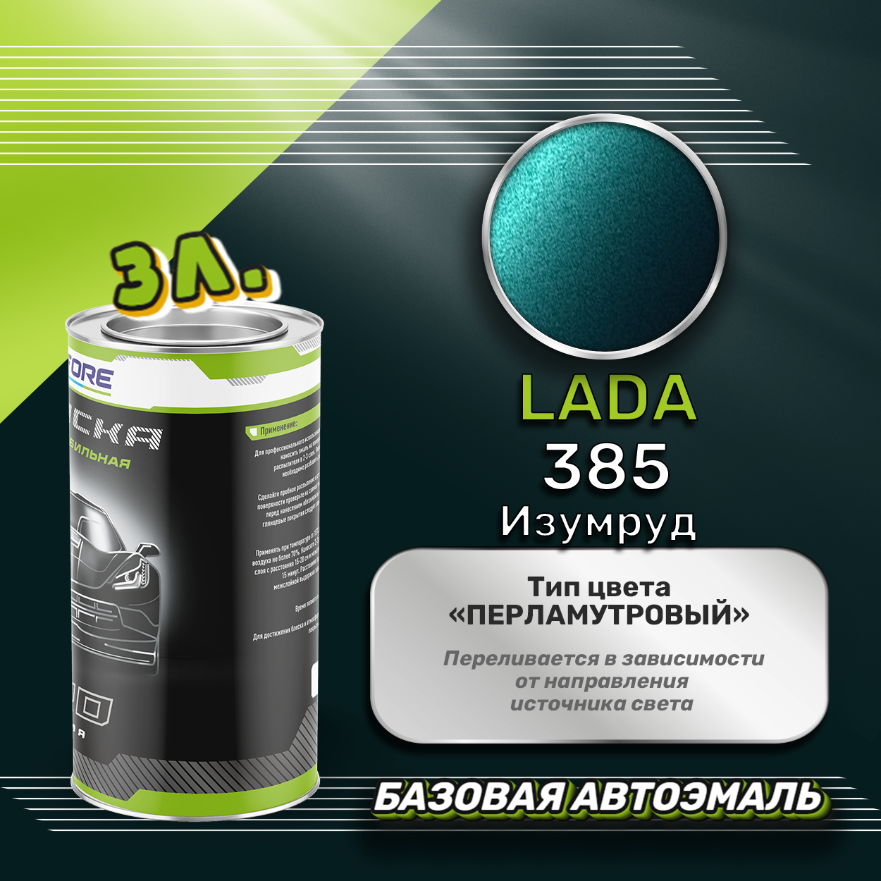Купить Luxfore краска базовая эмаль LADA 385 Изумруд 3000 мл