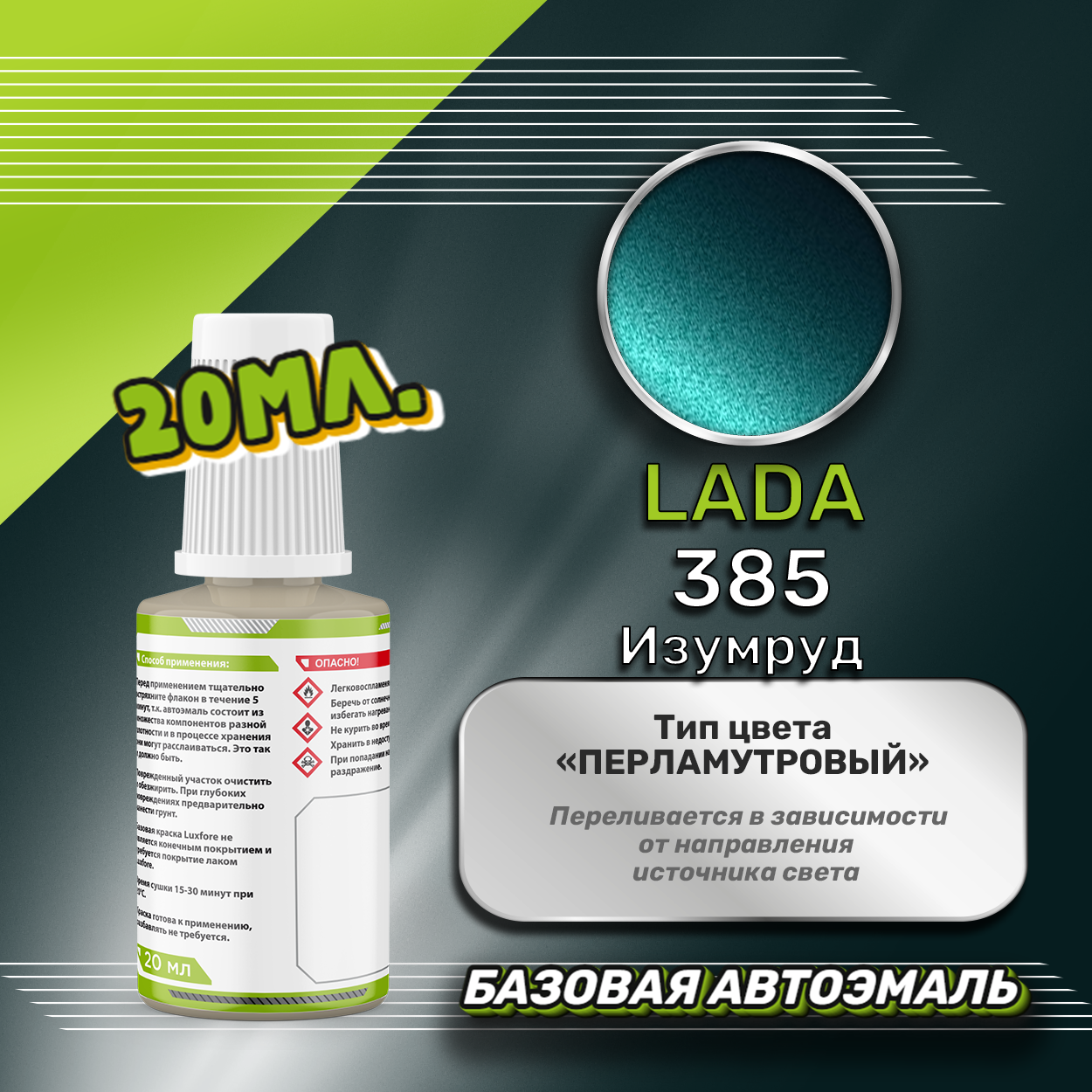 Купить Luxfore автоэмаль базовая LADA 385 Изумруд подкраска 20 мл.
