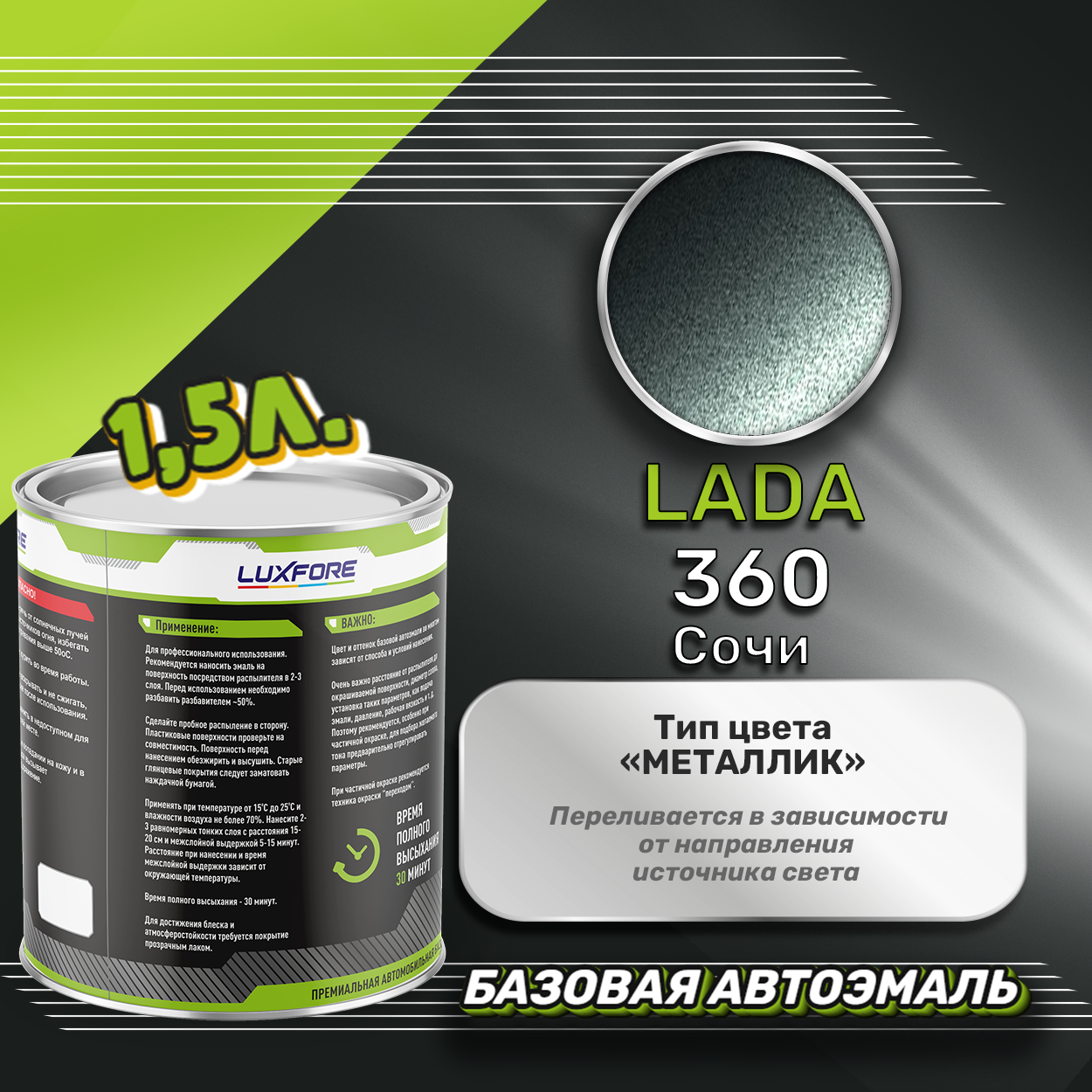 Купить Luxfore краска базовая эмаль LADA 360 Сочи 1500 мл