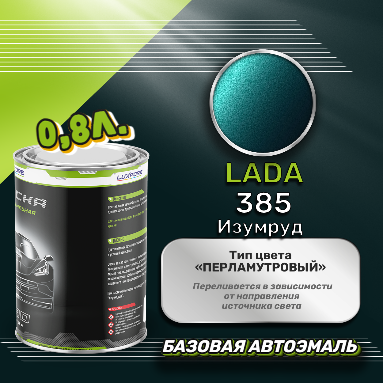 Купить Luxfore краска базовая эмаль LADA 385 Изумруд 800 мл