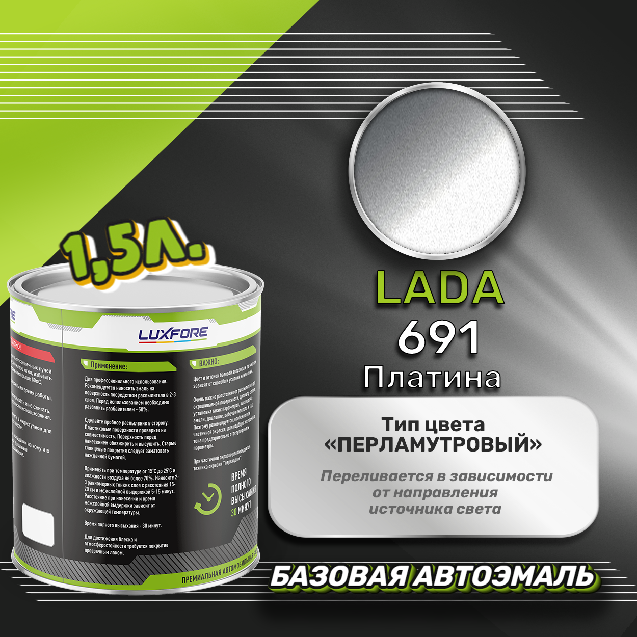Купить Luxfore краска базовая эмаль LADA 691 Платина 1500 мл