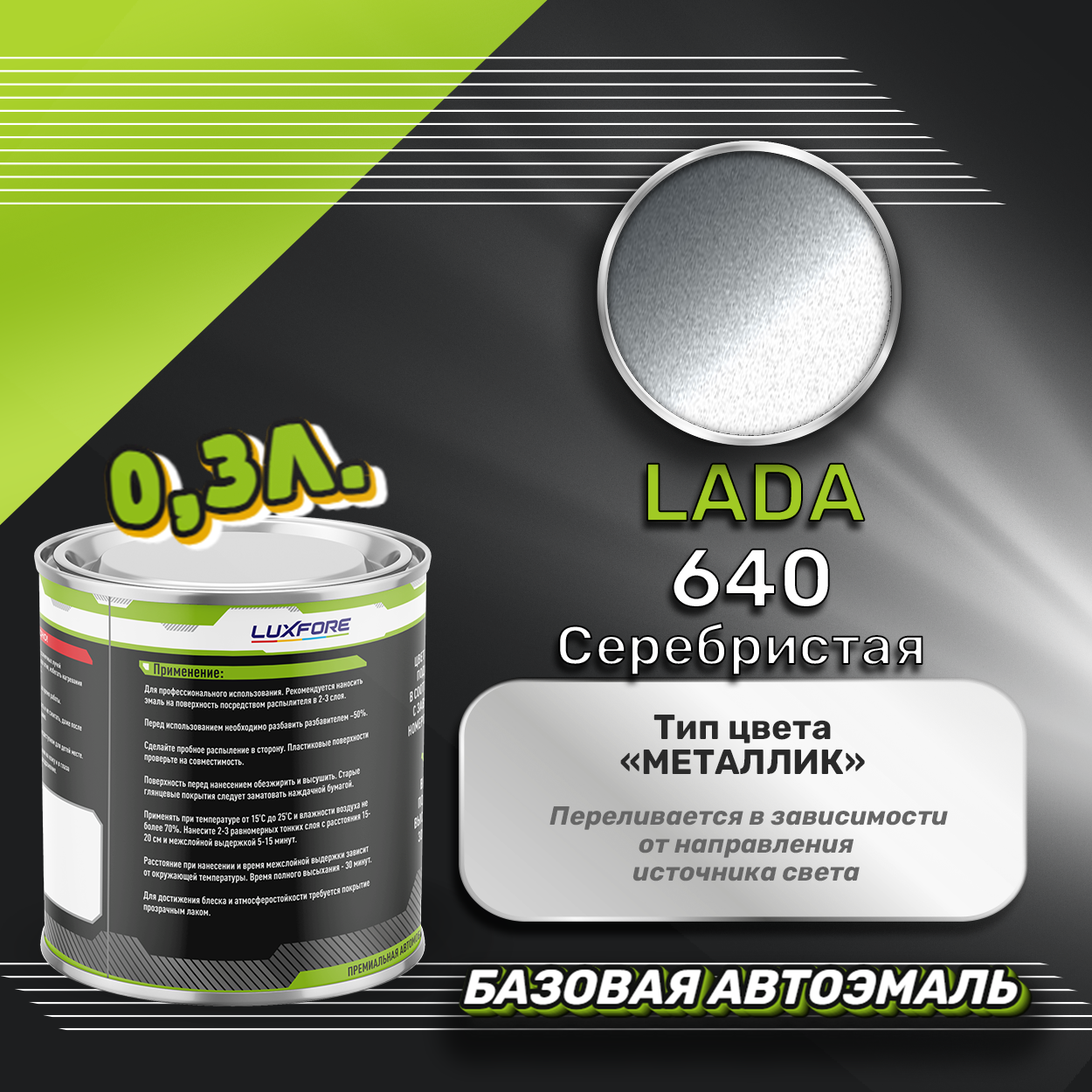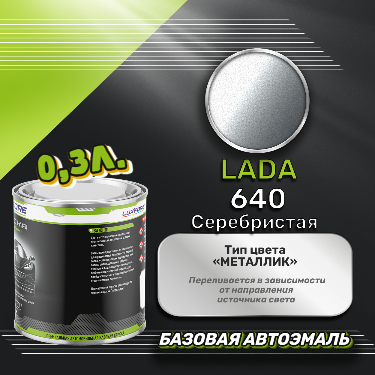 Luxfore краска базовая эмаль LADA 640 Серебристая 800 мл