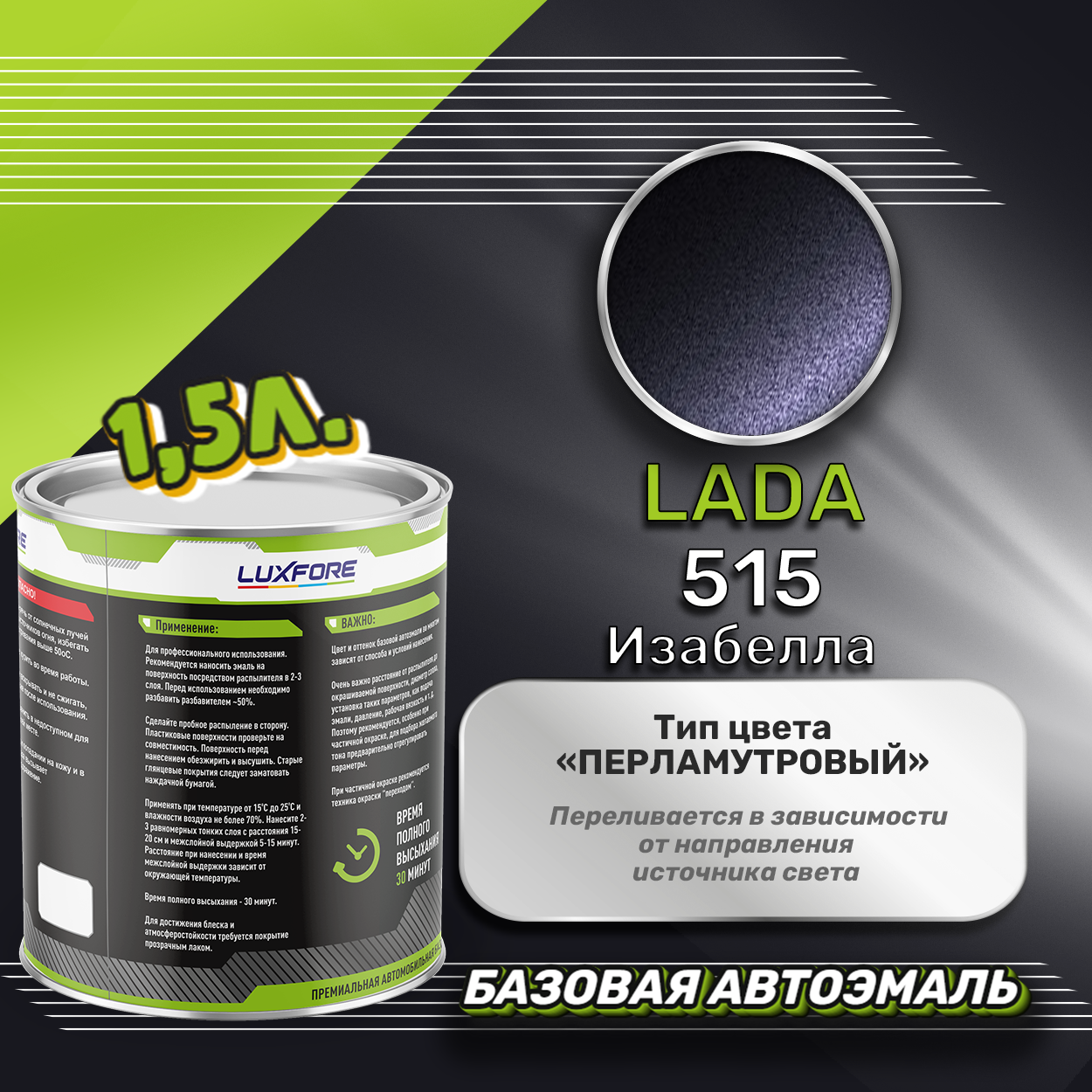 Купить Luxfore краска базовая эмаль LADA 515 Изабелла 1500 мл