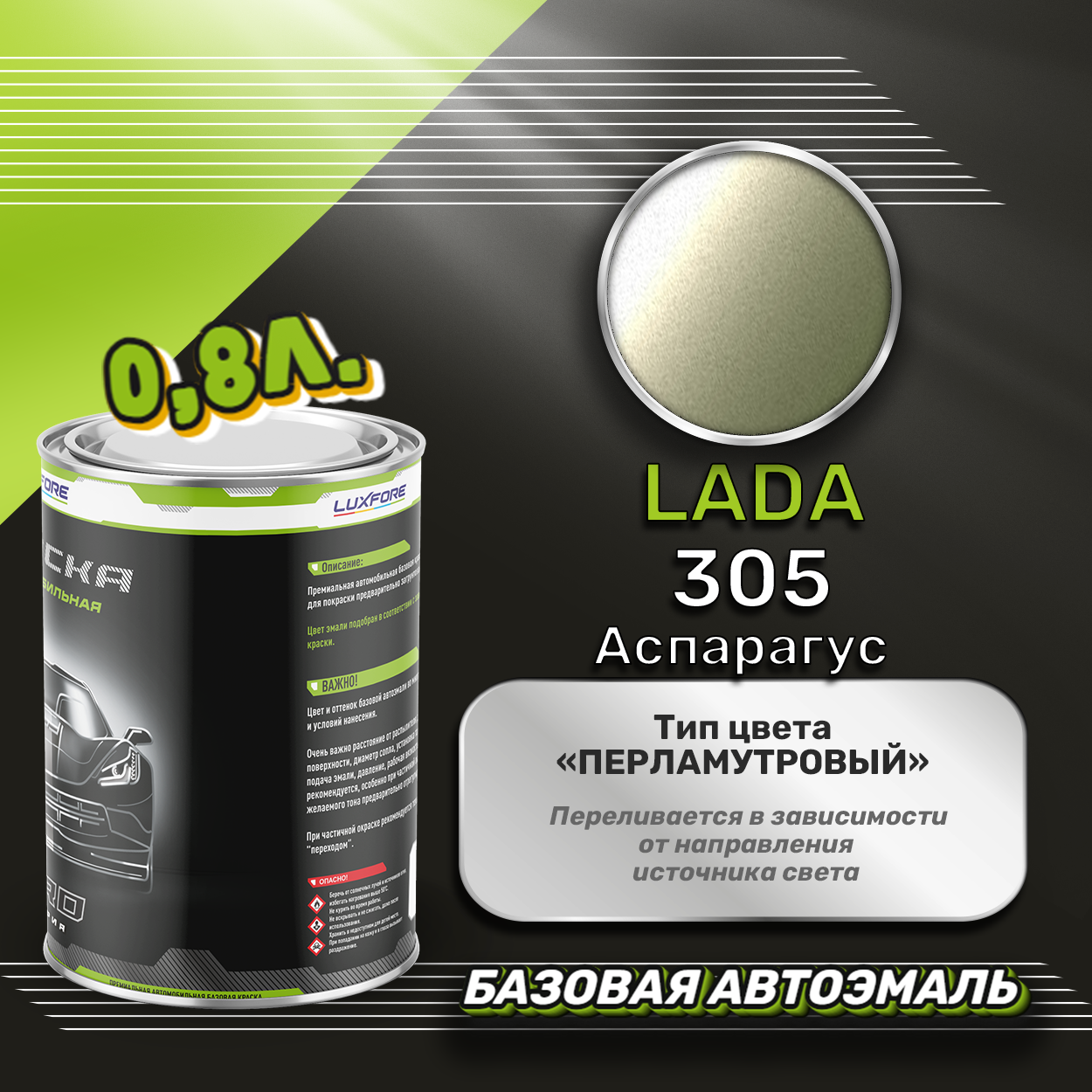 Купить Luxfore краска базовая эмаль LADA 305 Аспарагус 800 мл