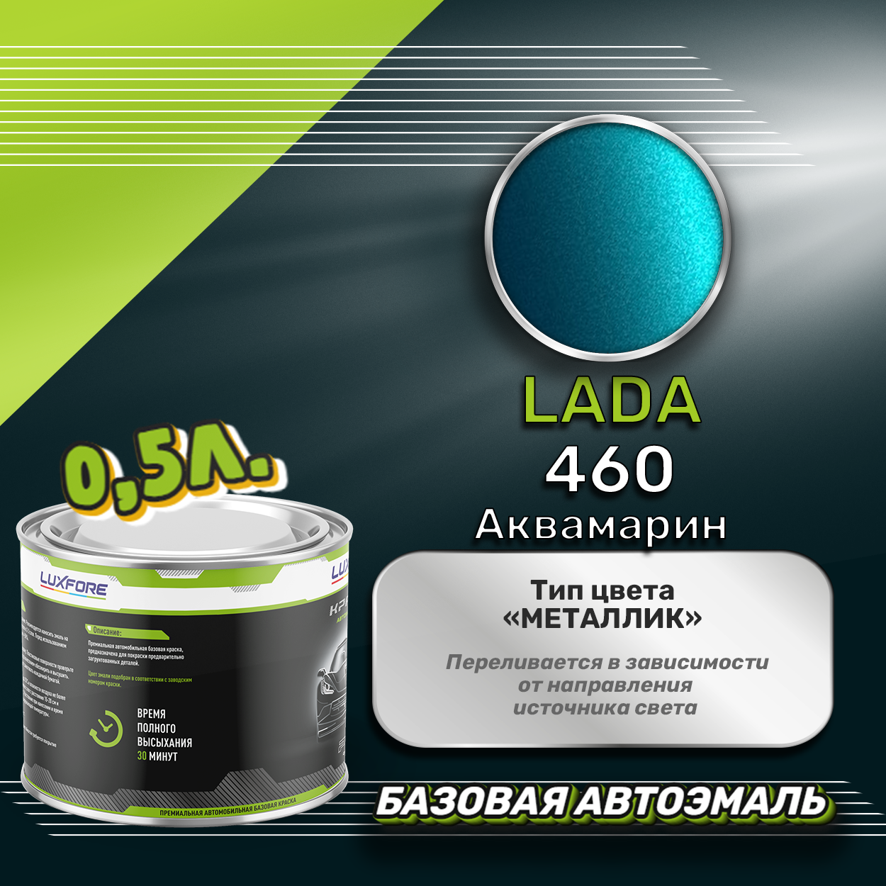 Купить Luxfore краска базовая эмаль LADA 460 Аквамарин 500 мл