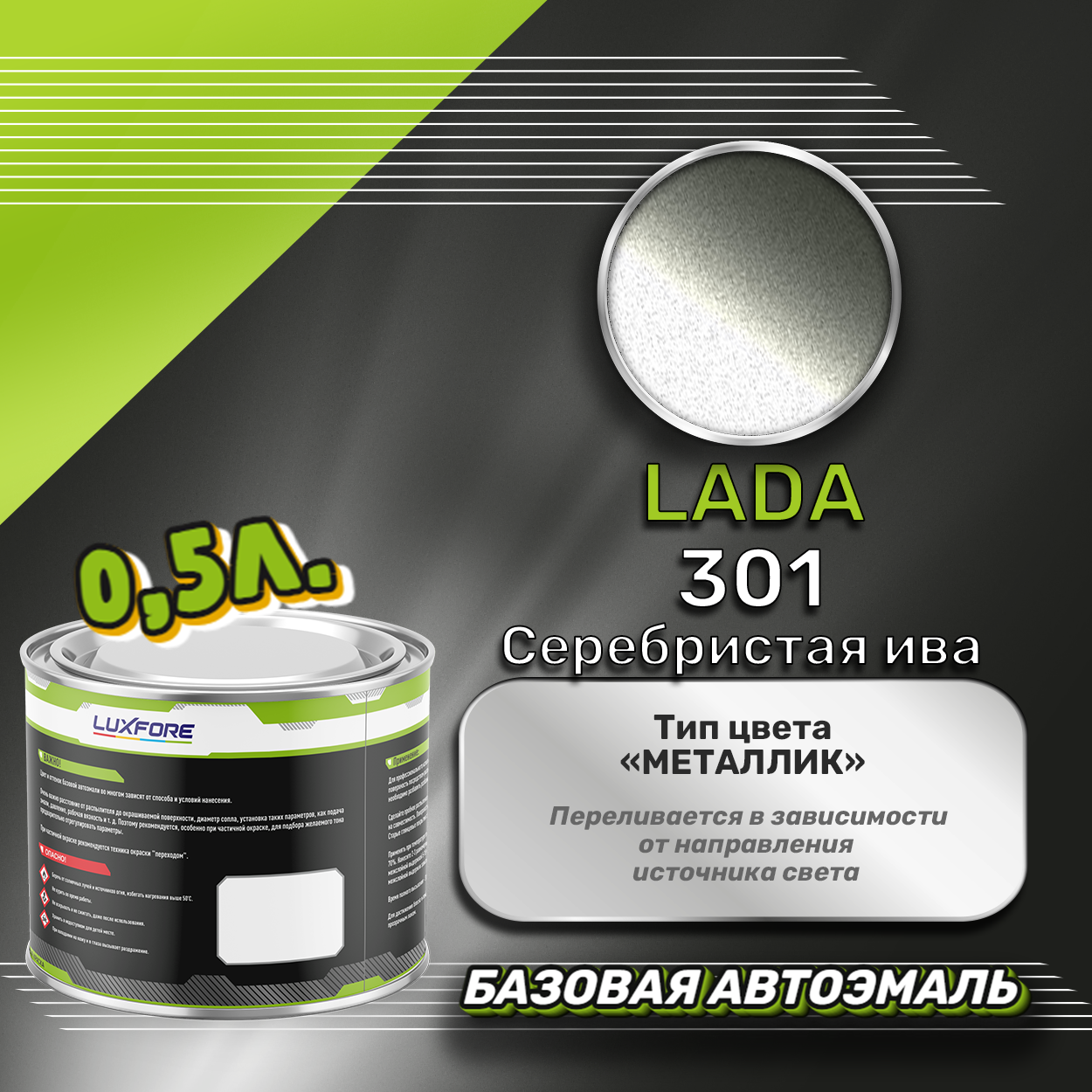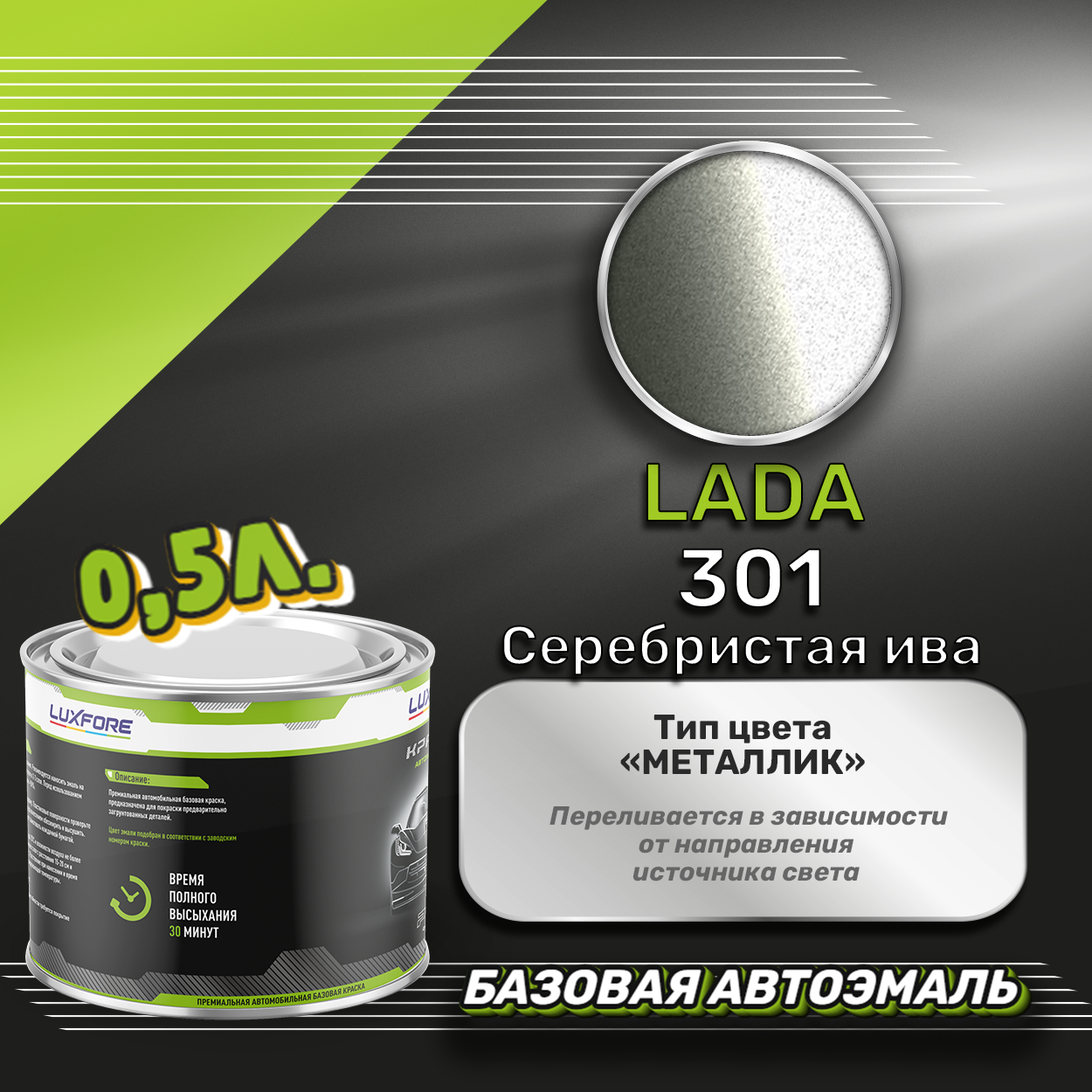 Luxfore краска базовая эмаль LADA 301 Серебристая ива 800 мл