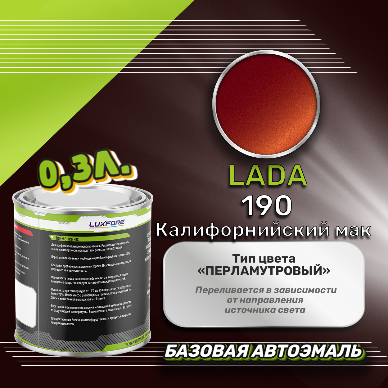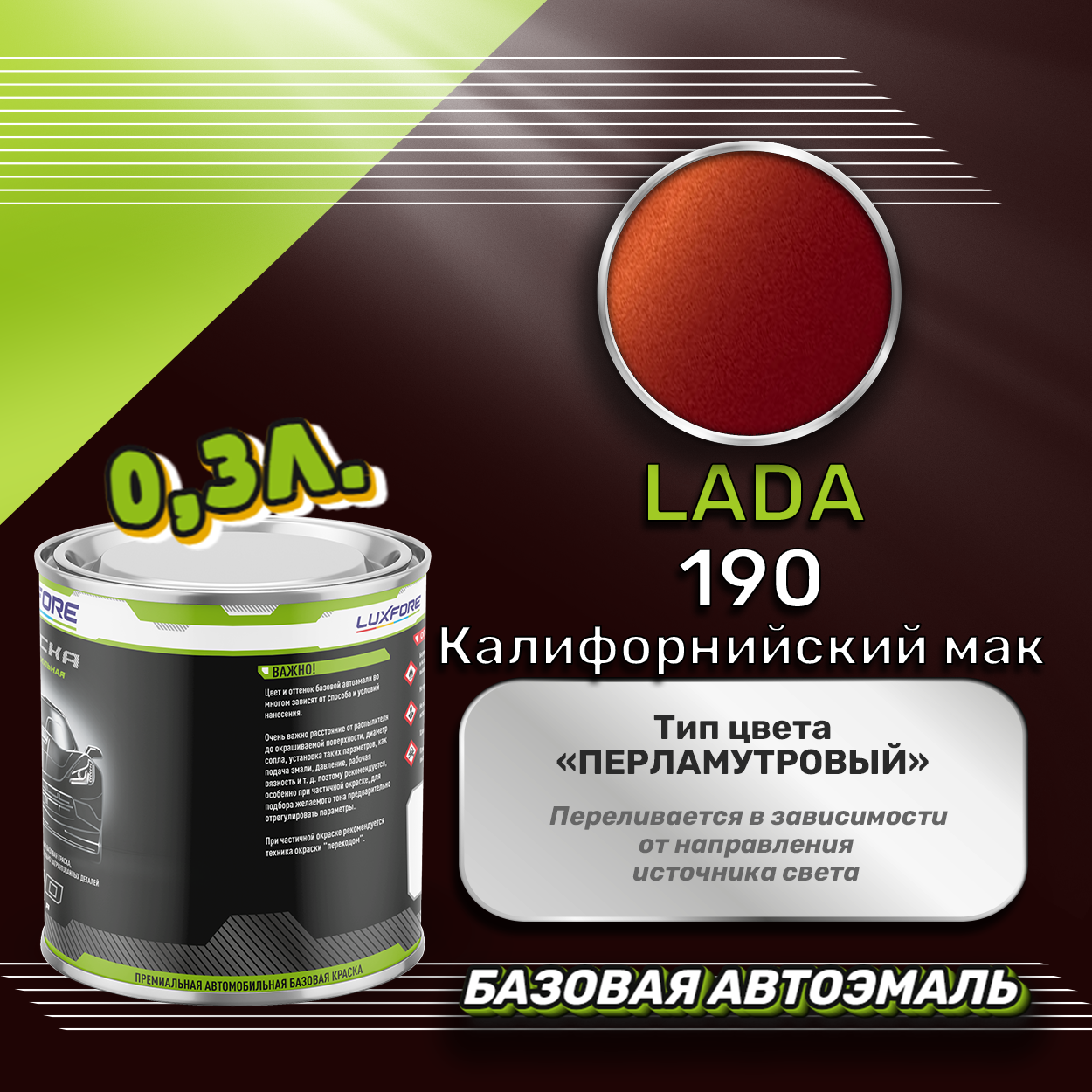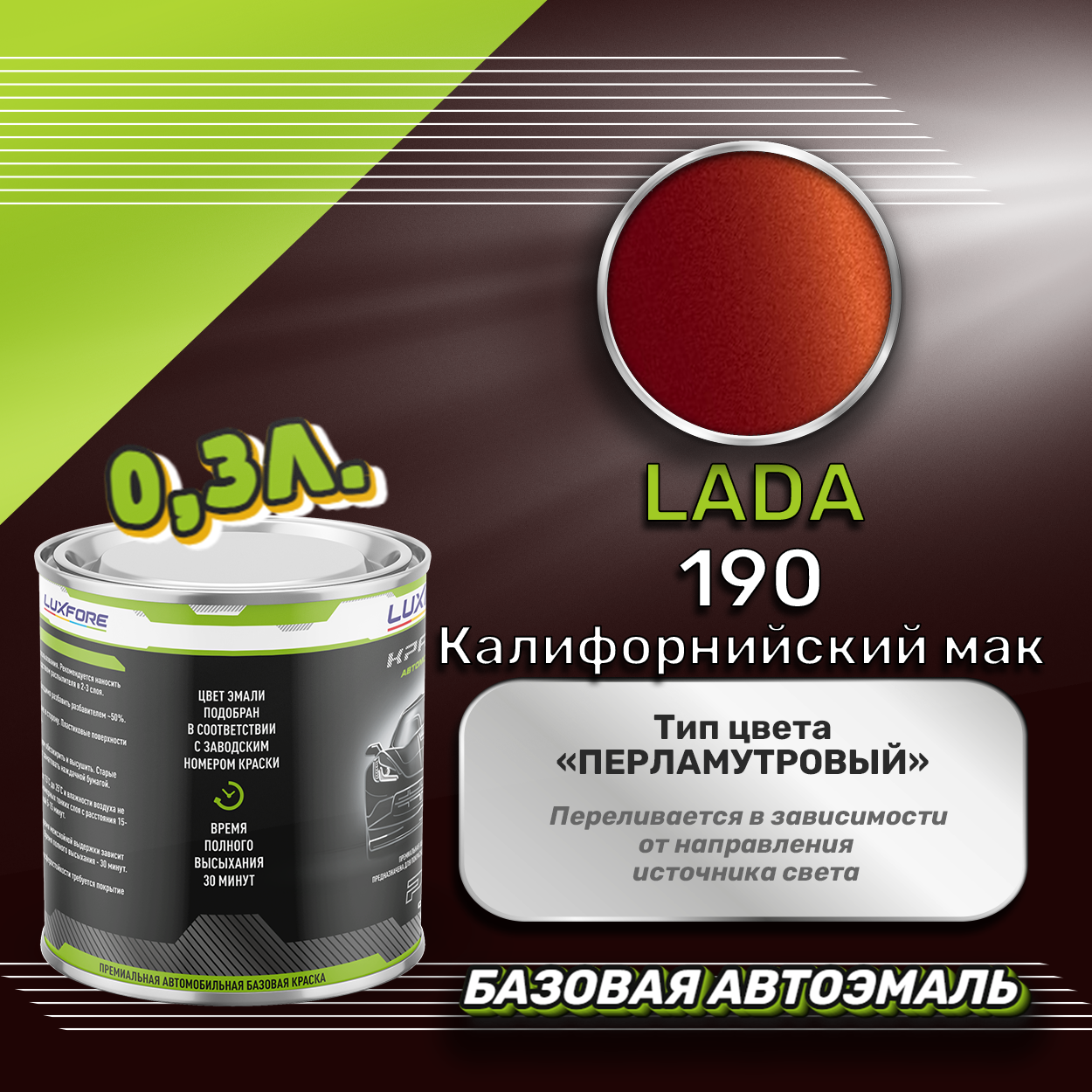 Купить Luxfore краска базовая эмаль LADA 190 Калифорнийский мак 300 мл