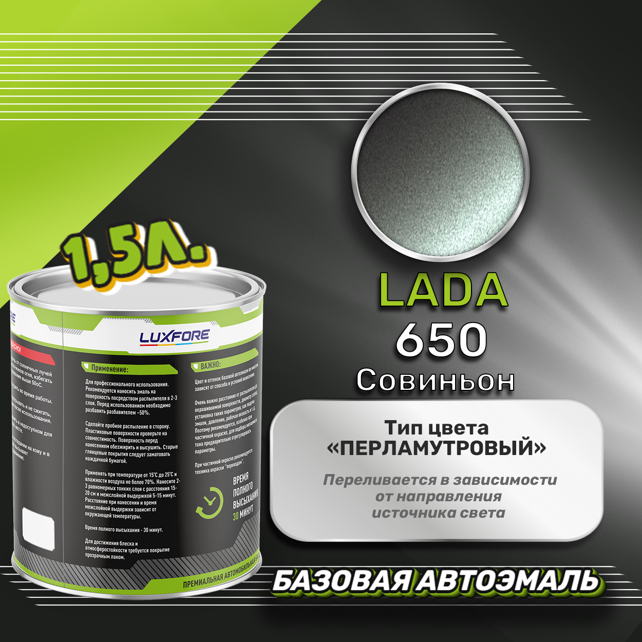 Купить Luxfore краска базовая эмаль LADA 650 Совиньон 1500 мл