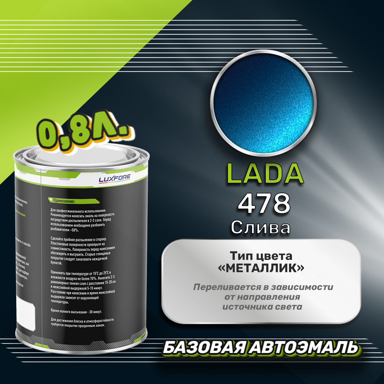 Купить Luxfore краска базовая эмаль LADA 478 Слива 800 мл