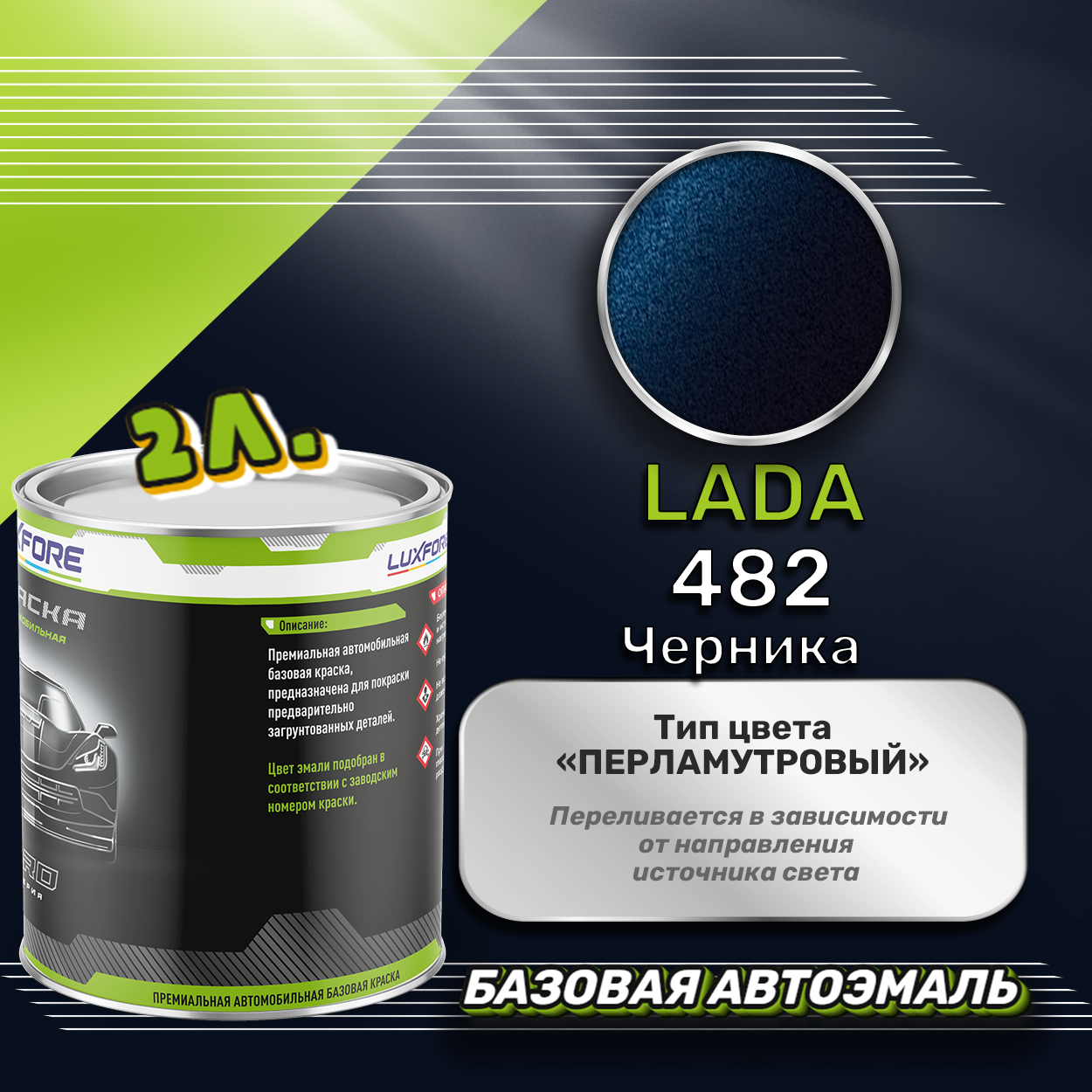 Купить Luxfore краска базовая эмаль LADA 482 Черника 2000 мл