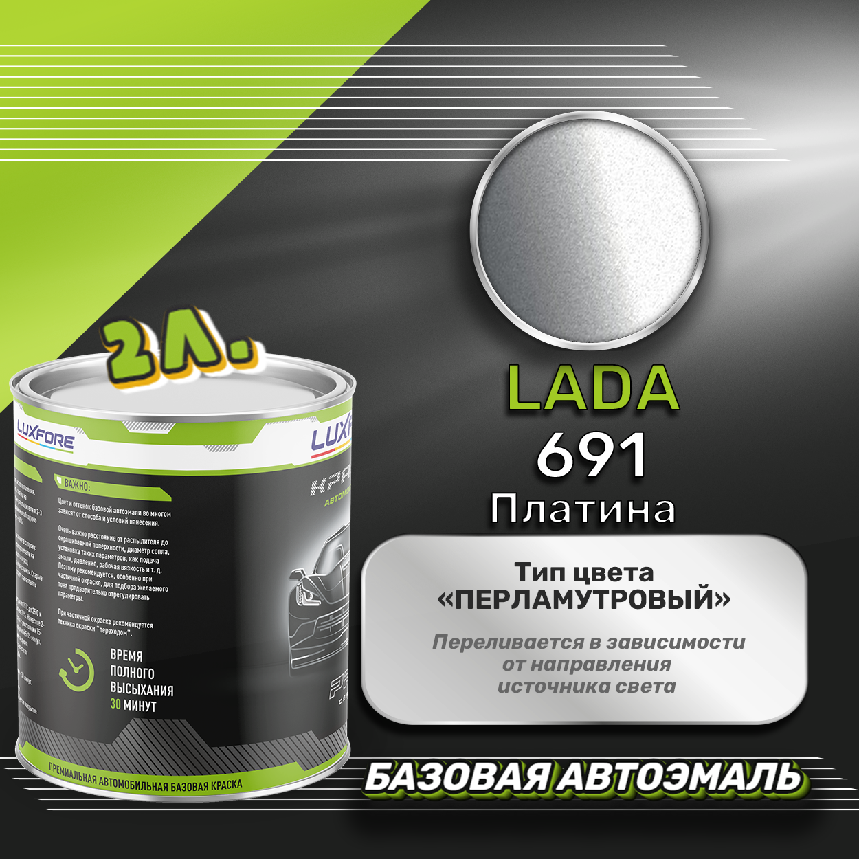 Купить Luxfore краска базовая эмаль LADA 691 Платина 2000 мл