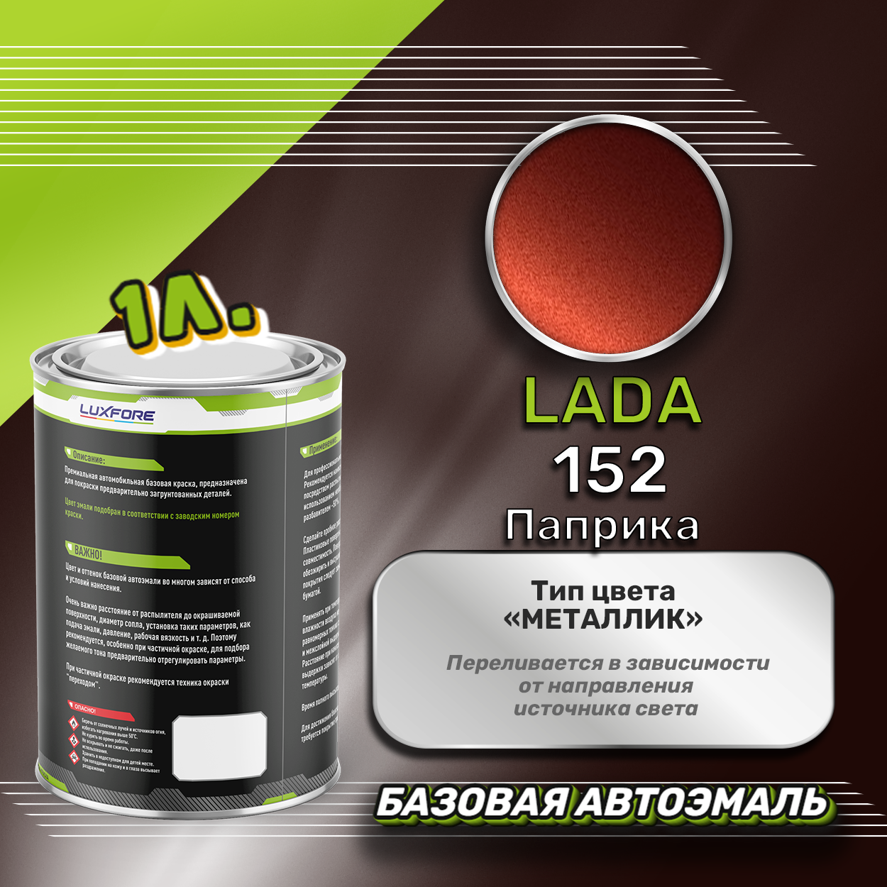 Купить Luxfore краска базовая эмаль LADA 152 Паприка 1000 мл