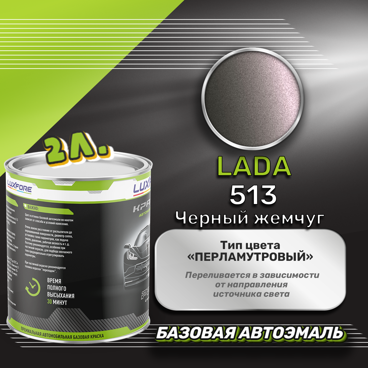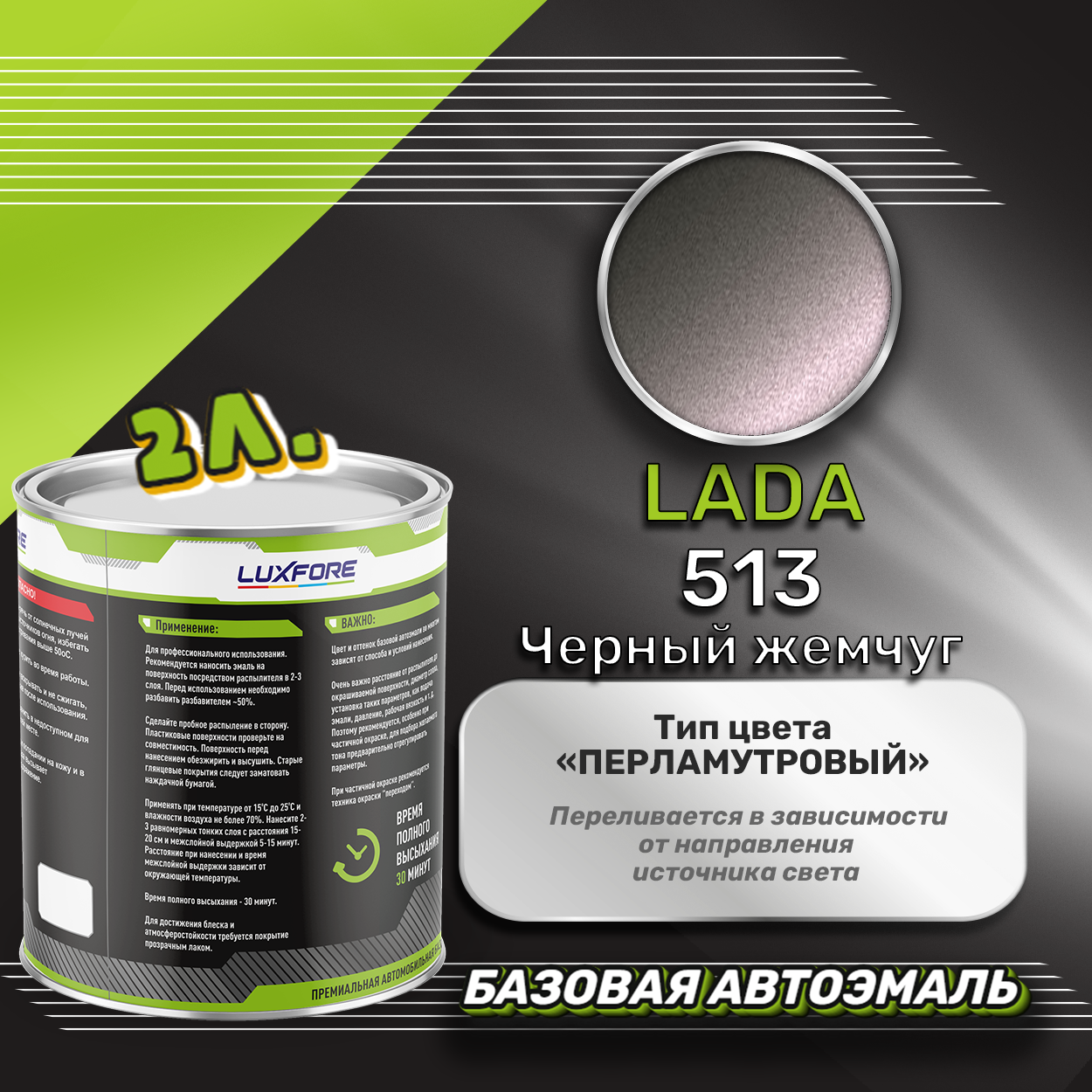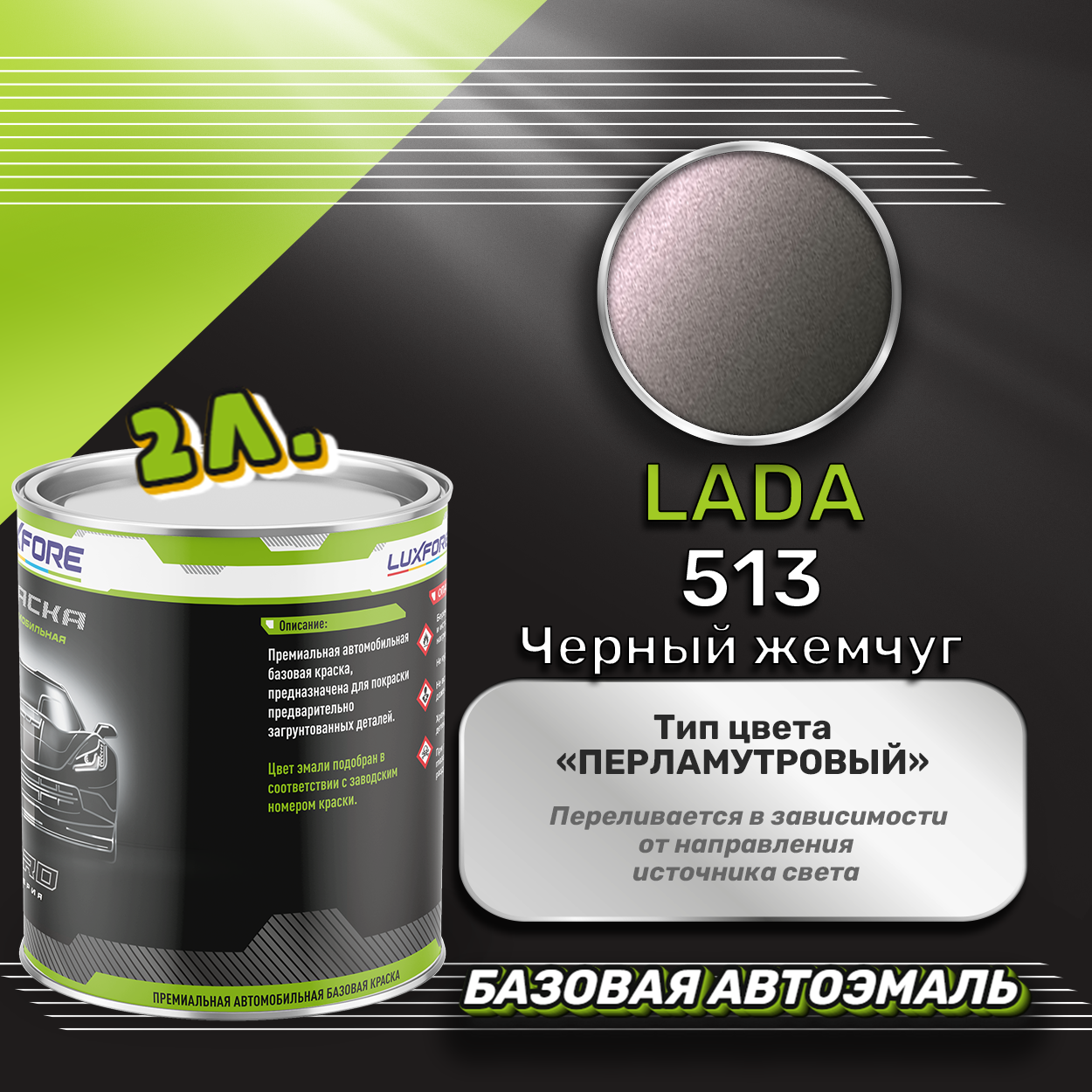 Купить Luxfore краска базовая эмаль LADA 513 Черный жемчуг 2000 мл