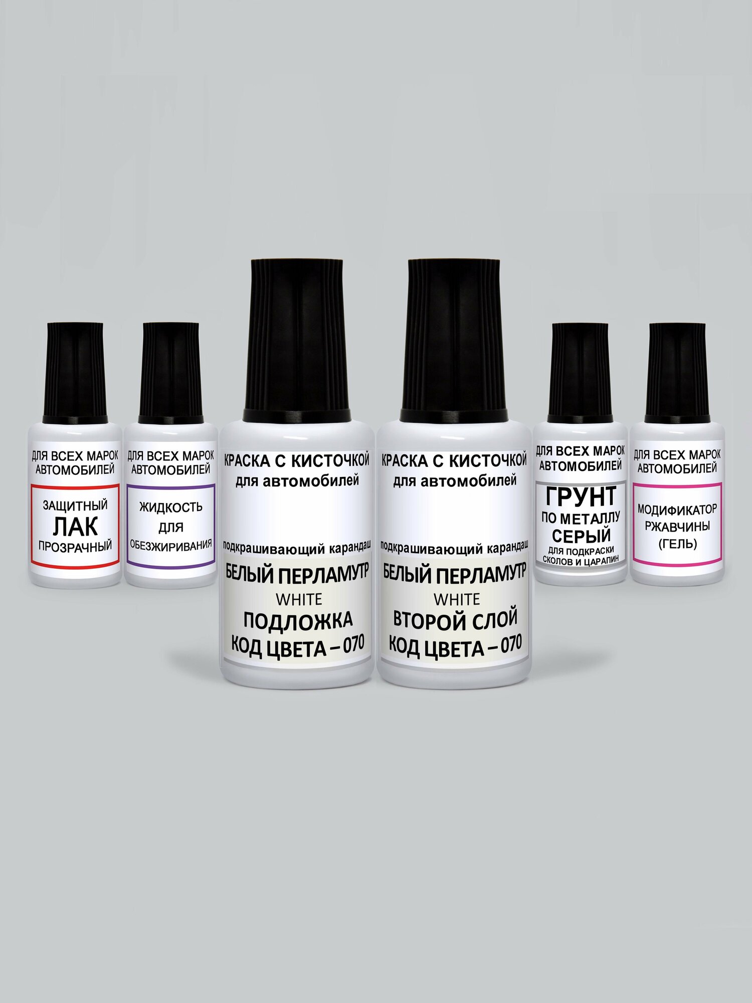 Краска для сколов во флаконе с кисточкой 070 Toyota Белый перламутр, White, краска+лак 3 предмета