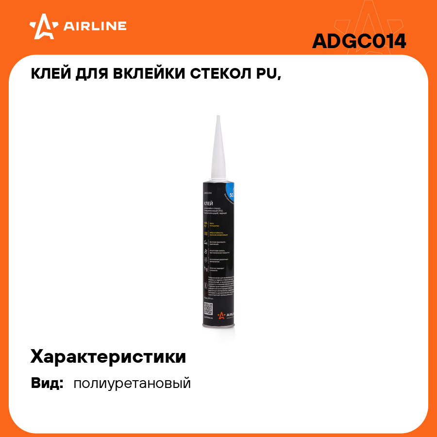 Клей для вклейки стекол PU, быстросохнущий (50 мин.), черный, 310 мл. картридж (ADGC014) AIRLINE / арт. ADGC014 - (1 шт)