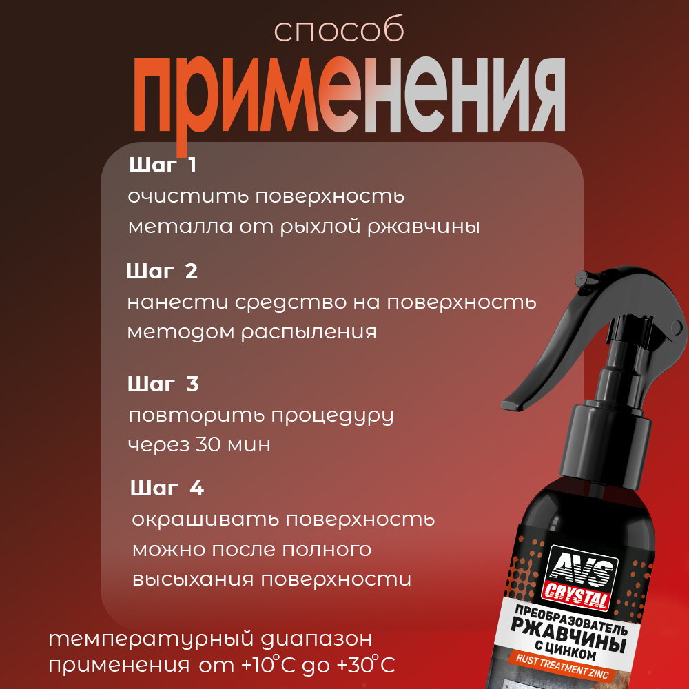 Преобразователь ржавчины с цинком, цинкач, 60 мл AVS AVK-190