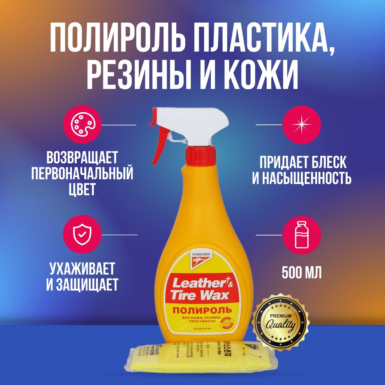 Полироль Kangaroo Leather & Tire Wax, глянцевый, антистатический эффект, 500мл