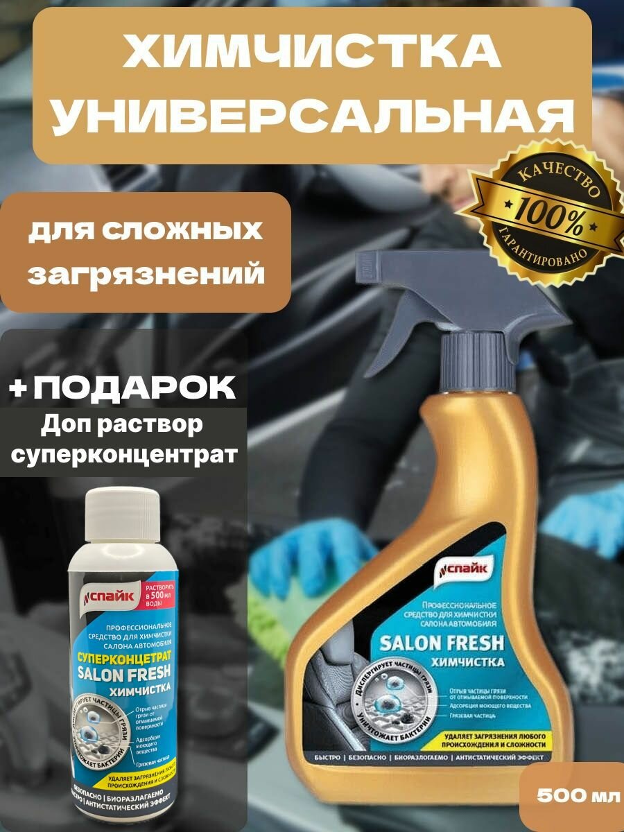 Химчистка салона авто, спайк, Универсальный очиститель SalonFresh 500 мл, в Подарок Пятновыводитель суперконцентрат Химчистка интересное: