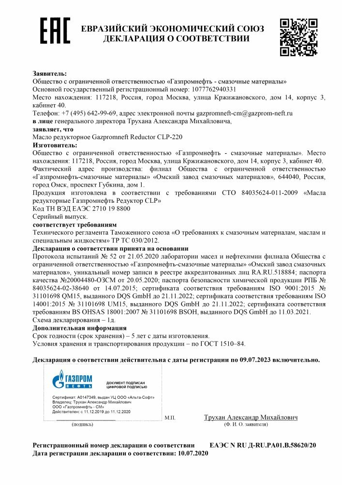 Масло Газпромнефть Редуктор Сlp-220 20Л Gazpromneft арт. 2389900229 интересное: