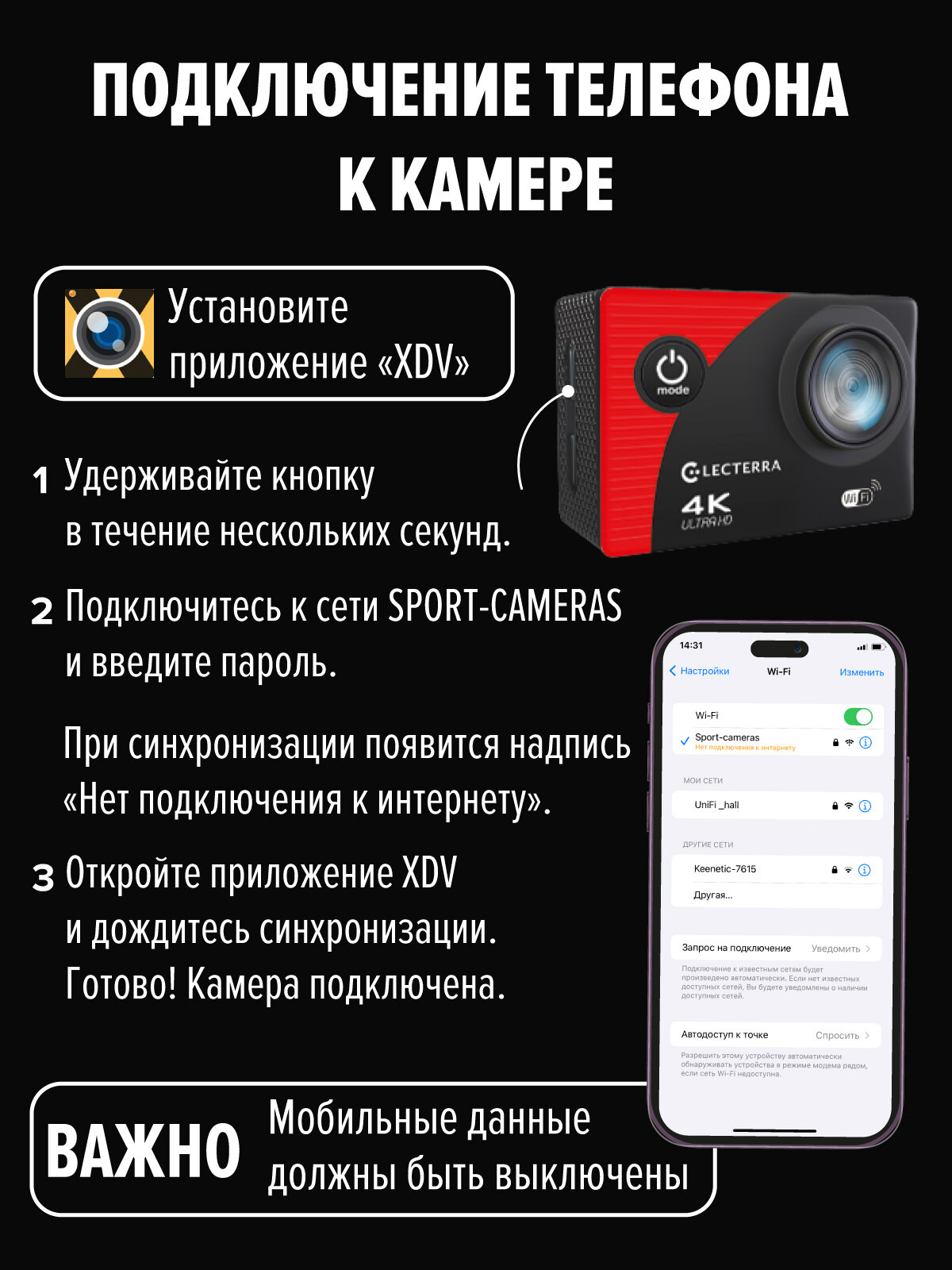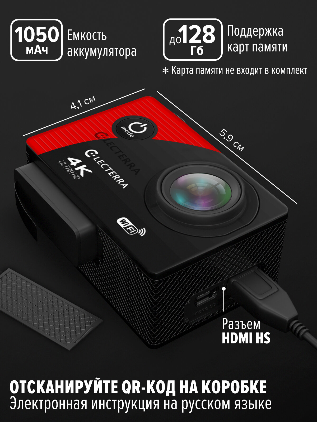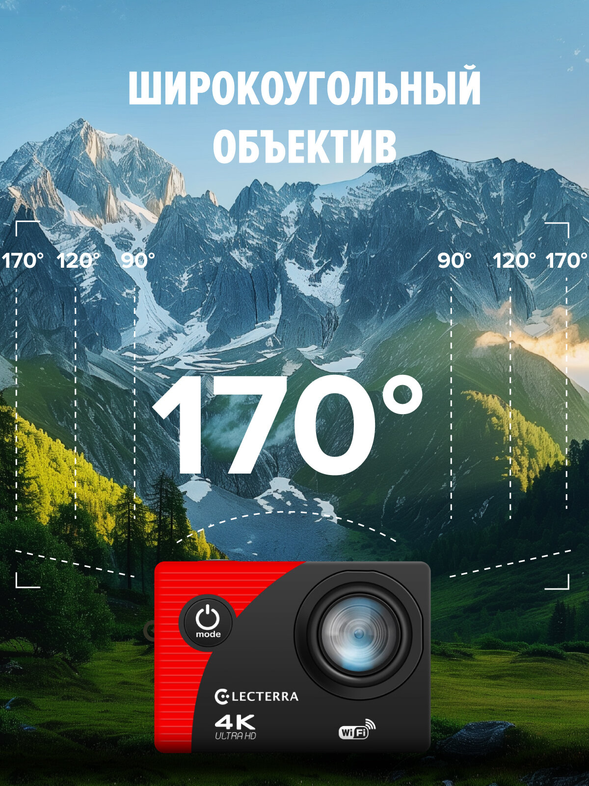 Экшн-камера Electerra 4K UHD с Wi-Fi. Экшен камера 4K для подводной съемки и активного отдыха