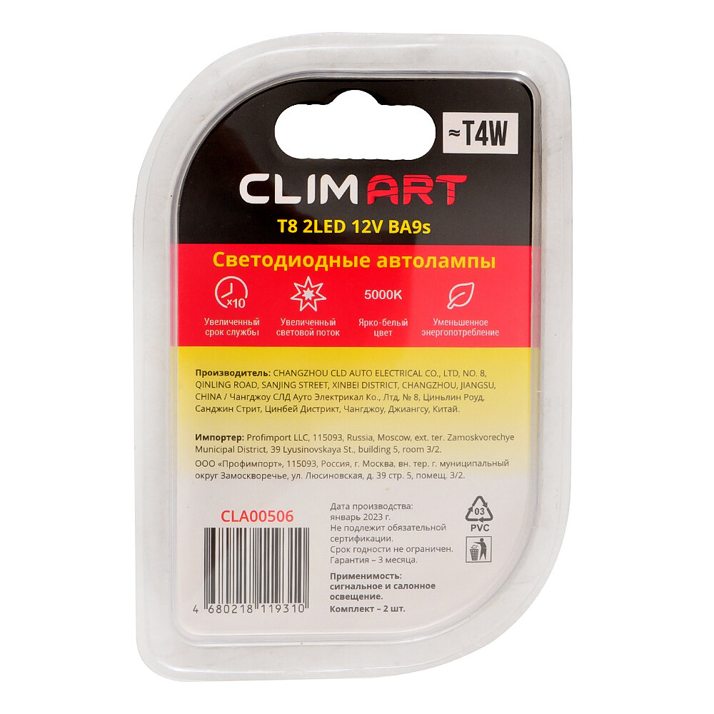 Светодиодная Led лампа автомобильная Clim Art T8 2LED 12V (T4W)/комплект 2 шт. интересное:
