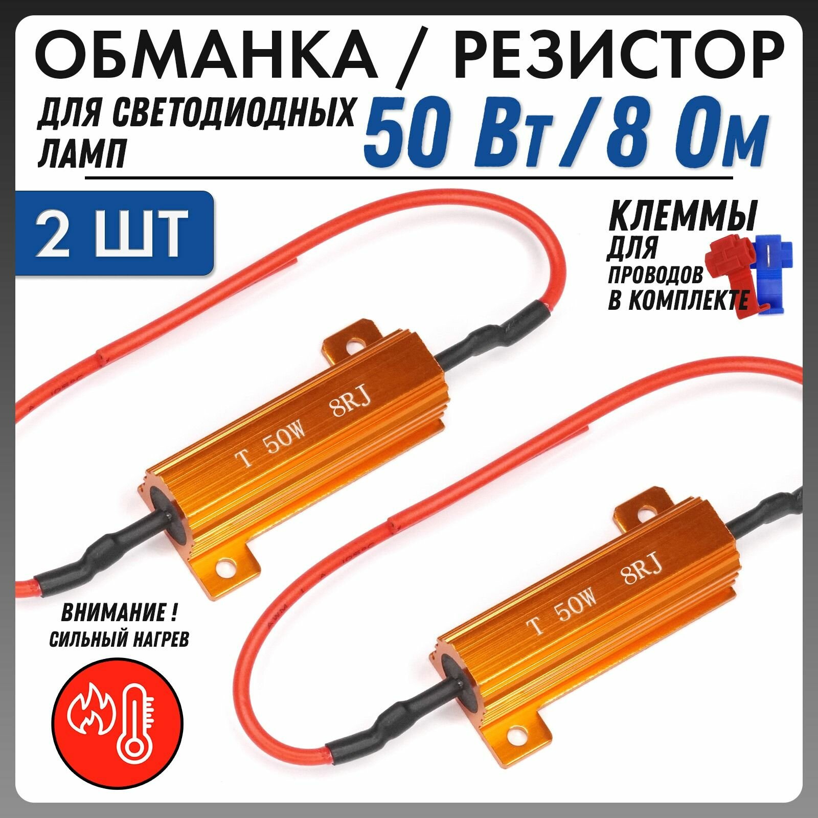 Купить Обманка Canbus для ламп 50 Вт 8 Ом 2шт Универсальный нагрузочный резистор светодиодных для поворотников, стопов, габаритов, противотуманок