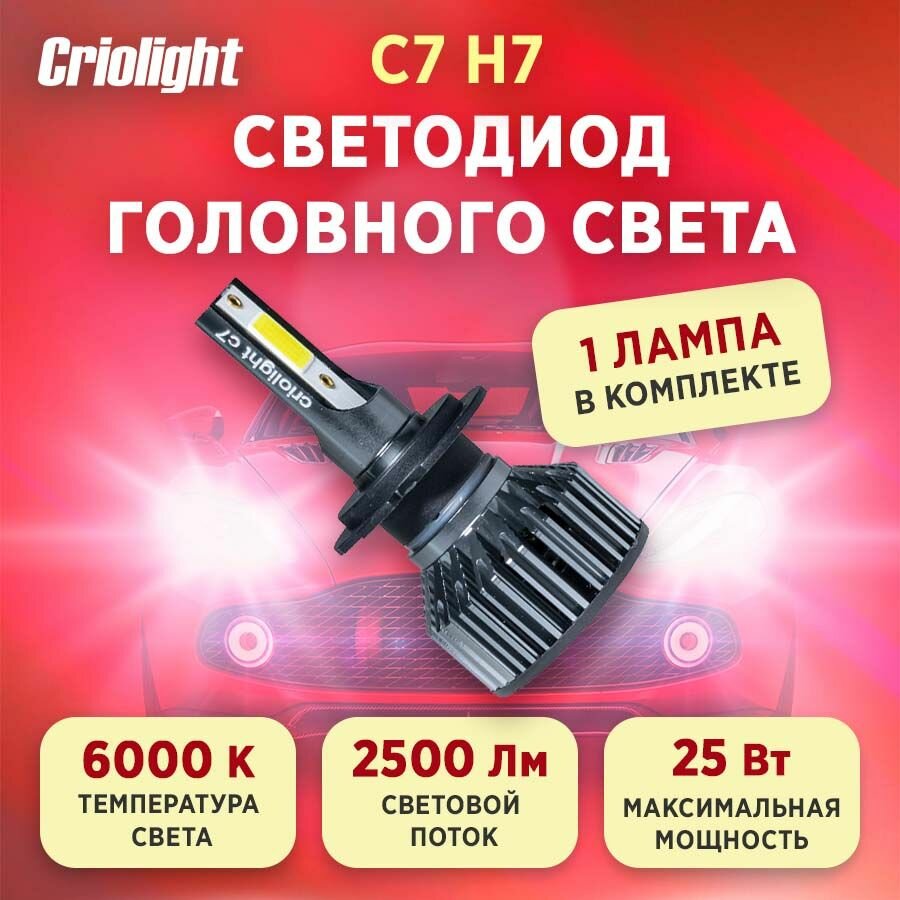 Лампа автомобильная светодиодная LED Criolight C7 H7 1 ШТ интересное: