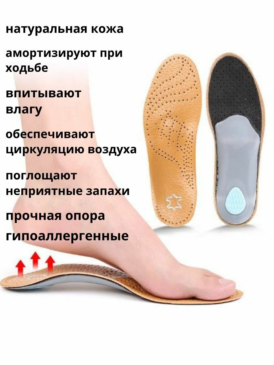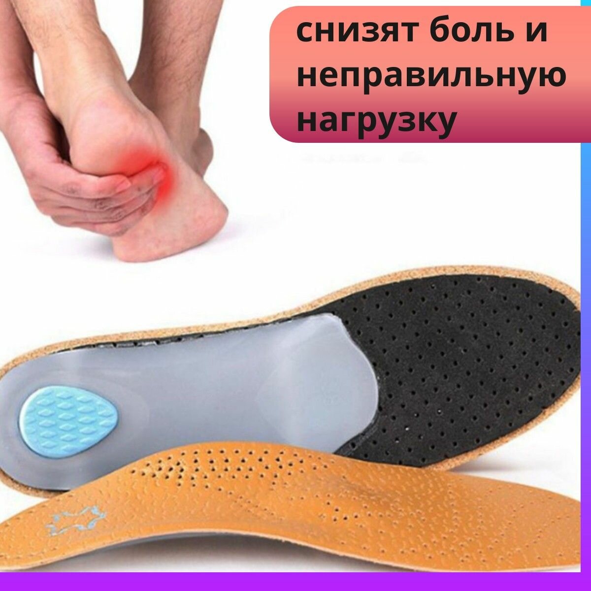 Стельки ортопедические кожаные анатомические каркасные при плоскостопии для обуви размер 41-42