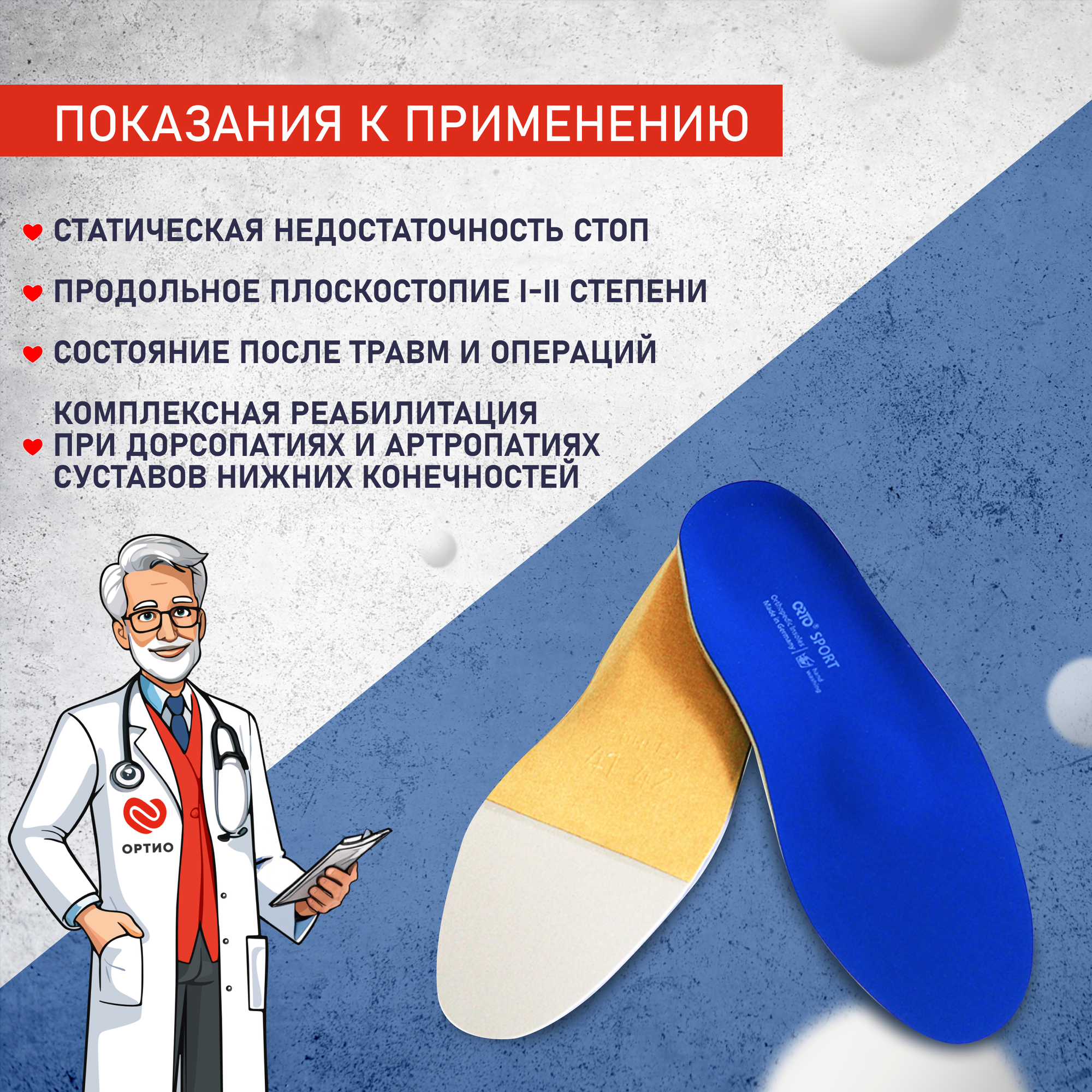 Стельки Orto "Sport", ортопедические, для спортивной обуви, универсальные, синие